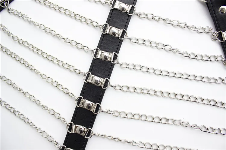 Взрослые игры кожаный ремень безопасности готические заклепки пряжки регулируемые металлические цепи бюстгальтер укороченный топ сексуальный грудь Связывание жгут белье