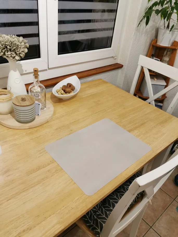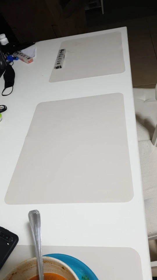 Коврик качественный, толще, нежели ожидала. У другого продовца покупала такие же, но красного цвета, и оказались очень тонкими. Так что у этого продовца коврики супер Покупала для того, чтобы защитить поверхность мебели на кухне.