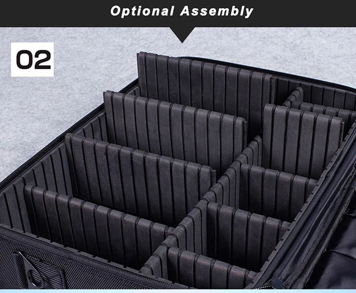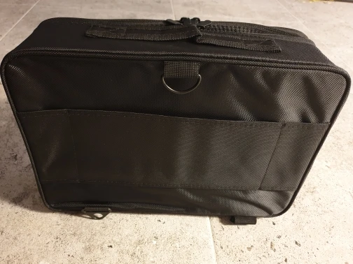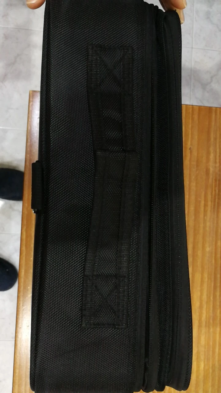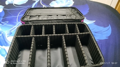 Очень доволен покупкой. Емкость хорошая (я купил самую большую), я думал, что не собираюсь использовать внешнюю секцию, но она пригодилась для хранения лампы. Он имеет липучку для фиксации подошвы и защиты области карманов. Сепараторы-деревянные доски, выложенные пеной, это просто, но практично. Материалы и швы кажутся стойкими. Я рекомендую продукт.