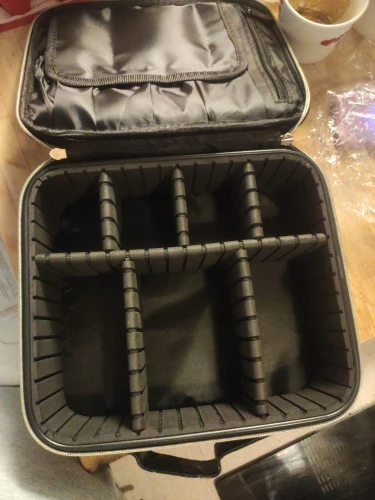 хороший, крепкий кейс, довольно вместительный, но в высоту маленький, ничего кроме помад вертикально не разместить. отделения тоже мелкие, но все разделители легко вытаскиваются и переставляются. замок и фурнитура дешевого жёлтого цвета, что сразу выдаёт происхождение этого кейса, но в целом покупкой довольна :)