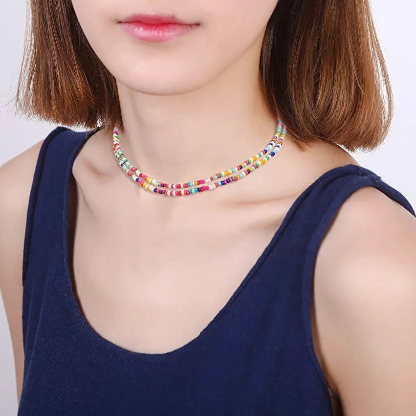 Колье-чокер с бусинами для женщин и девочек, богемное колье с бусинами ручной работы, пляжные бусы, ожерелье, цепочка, ювелирное изделие