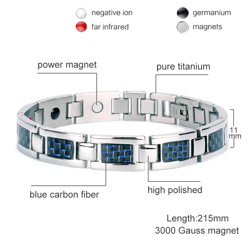 Oktrendy магнитный браслет для мужчин, мужской браслет для тенниса, био-Магнитный титановый браслет для артрита, синий браслет