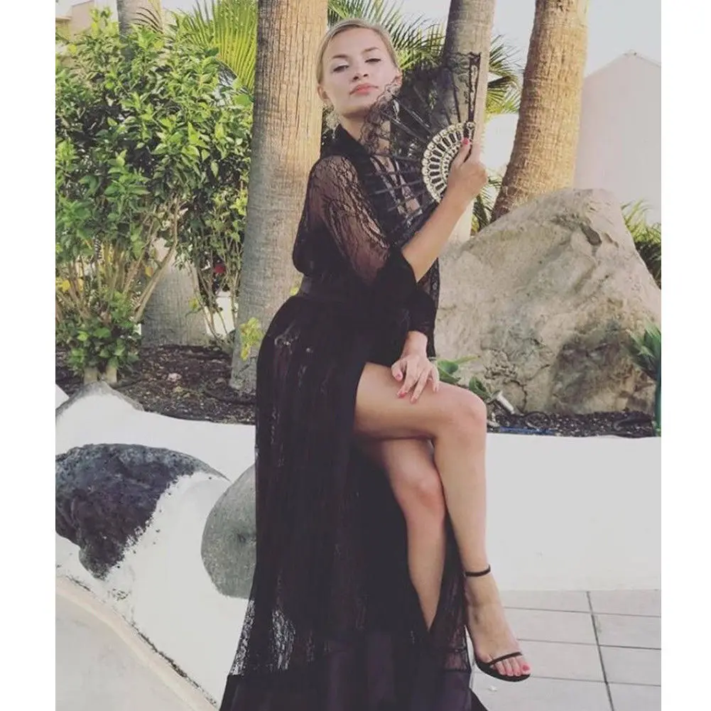 Женская шаль Hirigin, кардиган, пальто, кружевной Цветочный кафтан, пляжная одежда, накидка, Длинная блузка, топы, накидка, парео, сексуальный купальный костюм