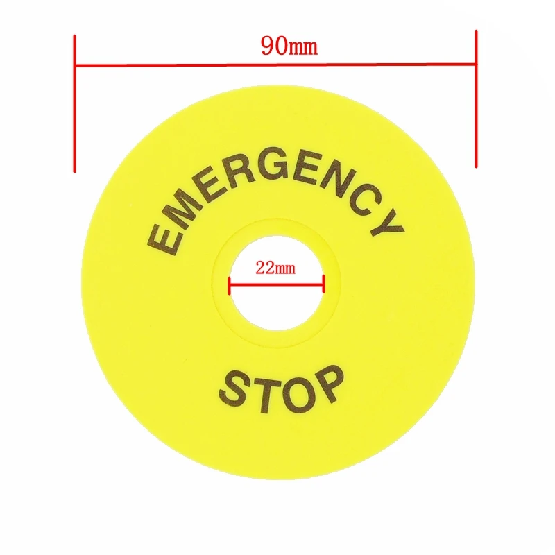 Кнопка аварийной остановки желтого цвета, аксессуар, предупреждающая метка, знак, круглое кольцо, 90 мм, 60 мм, 40 мм