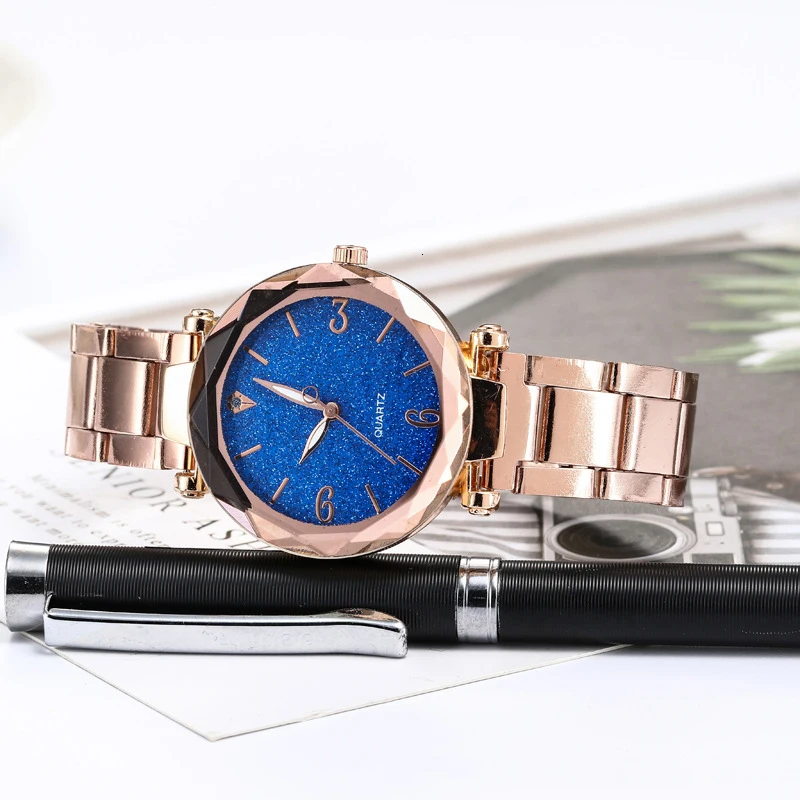 Часы наручные женские со звездами и небом, роскошные с браслетом из розового золота, хит продаж 2019