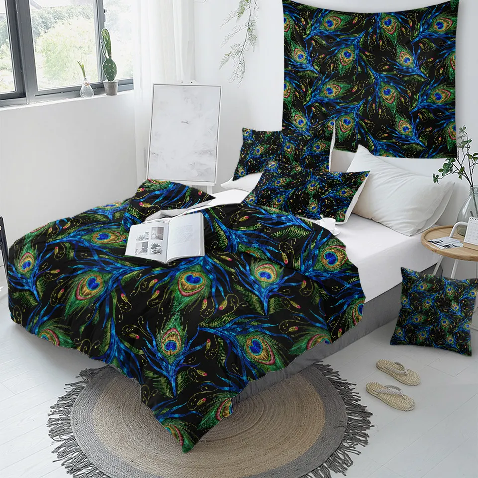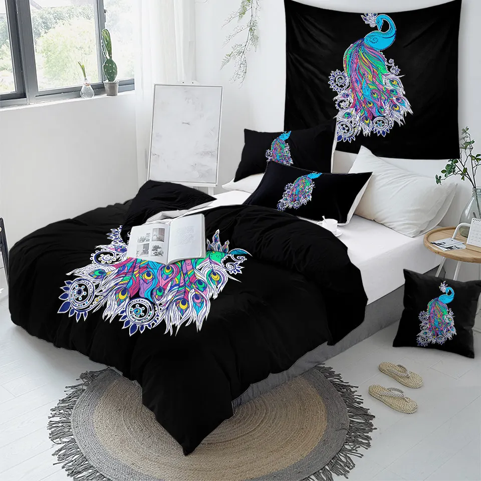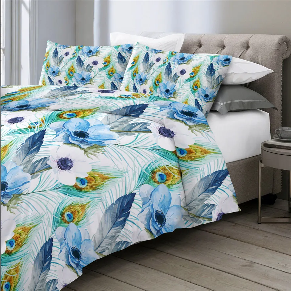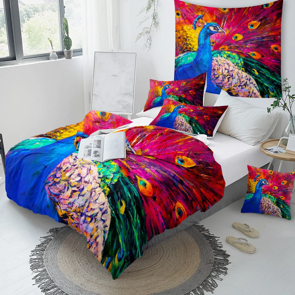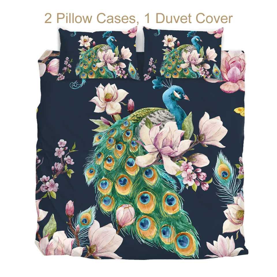 Комплект постельного белья с изображением птицы павлина, цветущего цветка сакуры, пододеяльник, акварельный домашний текстиль, розовая постельное белье магнолии, 3 шт.