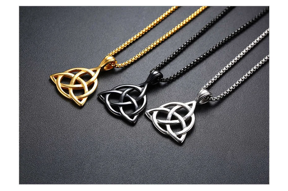Мужские ожерелья с кельтским узлом Vnox Viking, тройные Подвески с узором из узелков из нержавеющей стали, повседневные ювелирные изделия с цепочкой в коробке 24 дюйма