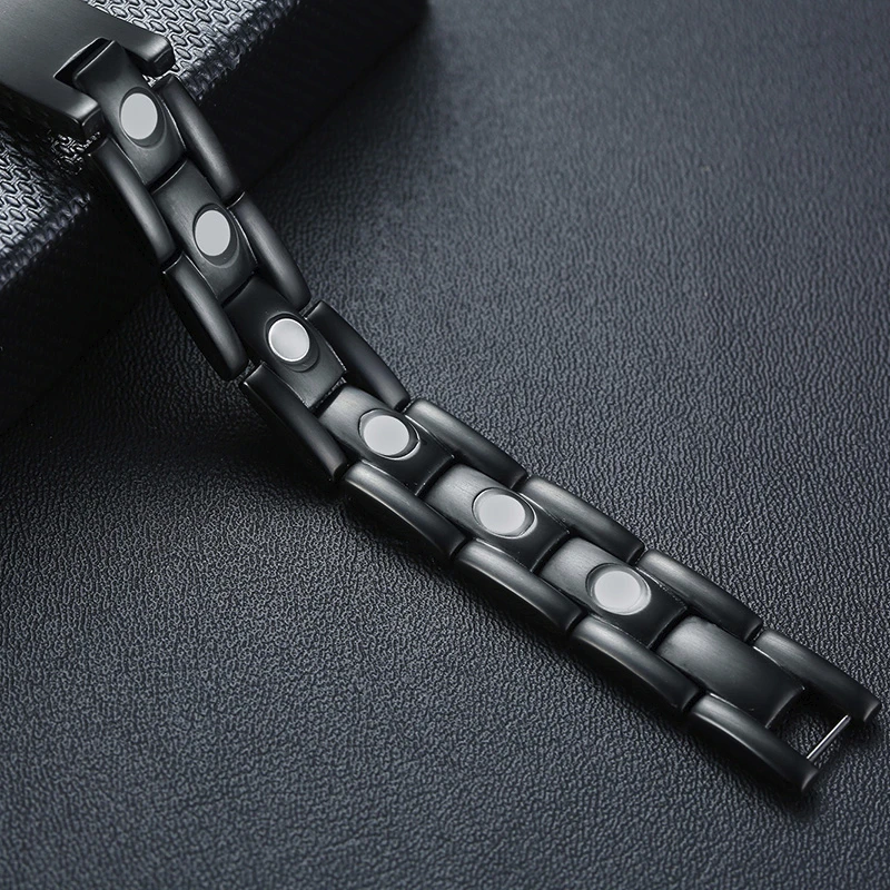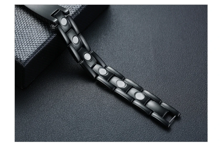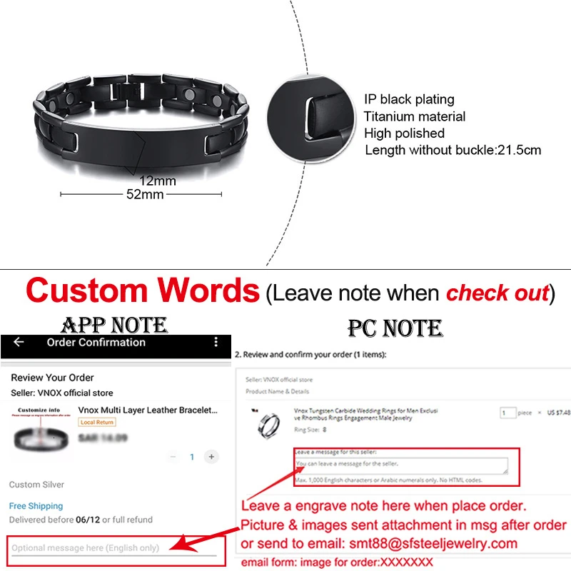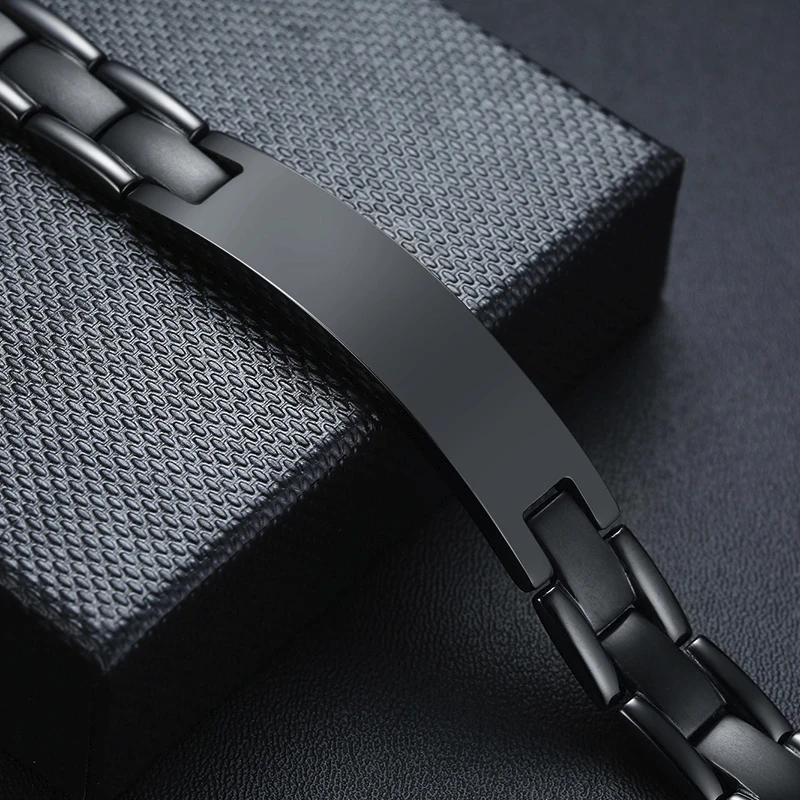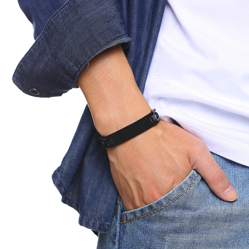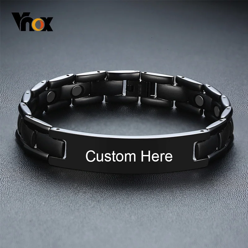 Vnox настраиваемым именем Info черный Титан Браслеты для Для мужчин терапевтический браслет Повседневное с инструмент