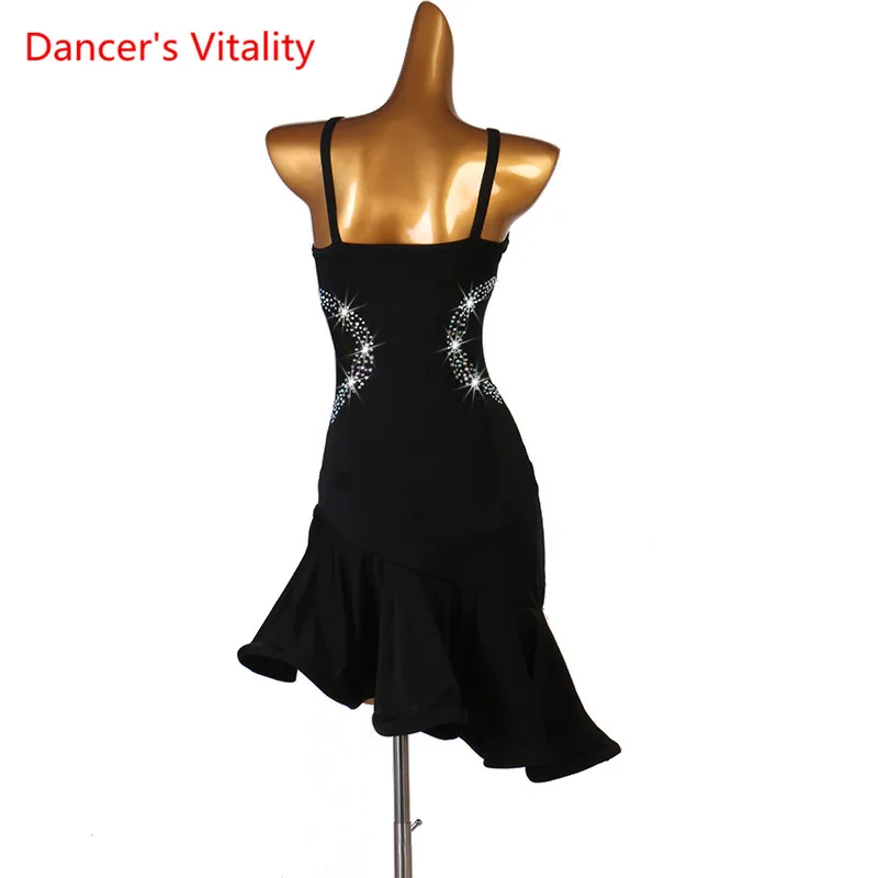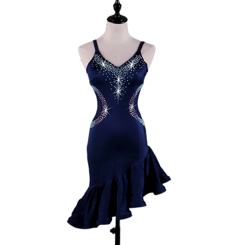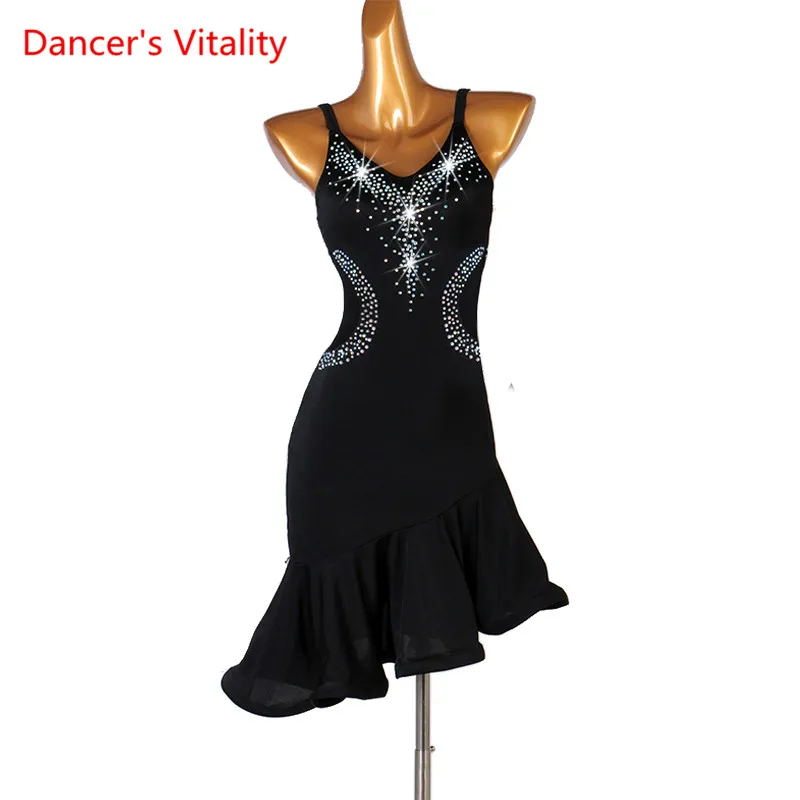 Новый стиль, костюм для латинских танцев, сексуальное платье из спандекса со стразами для латинских танцев, платья для латинских танцев