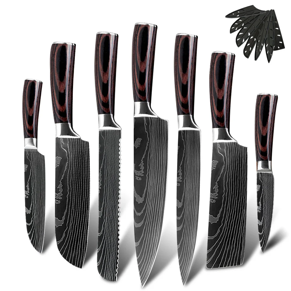 Японские кухонные ножи XYj, нож шеф-повара с лазерным узором из дамасской стали, универсальный инструмент для нарезки, Хэллоуин, рождественский подарок