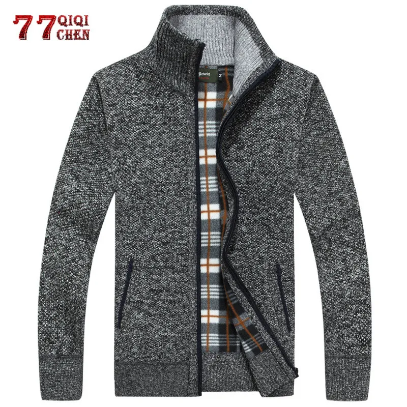 Осень-зима 2021, мужской свитер, куртка из искусственной шерсти, свитер, пальто на молнии, вязаный плотный кардиган, Теплое повседневное пальто