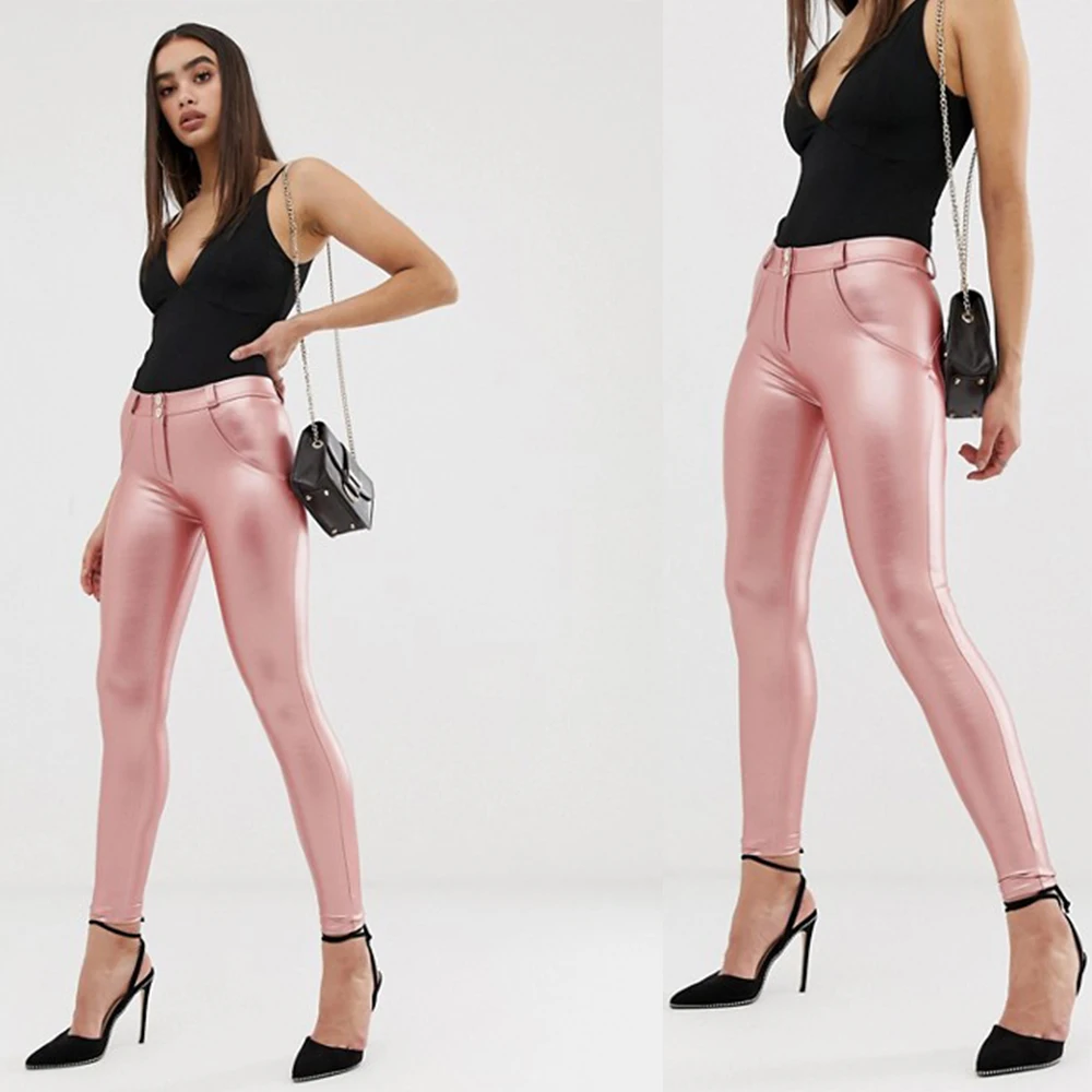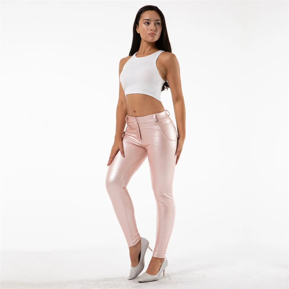 Melody, сексуальные штаны из искусственной кожи, зимние розовые кожаные длинные штаны со средней талией, женские обтягивающие штаны с флисовой подкладкой, новое поступление