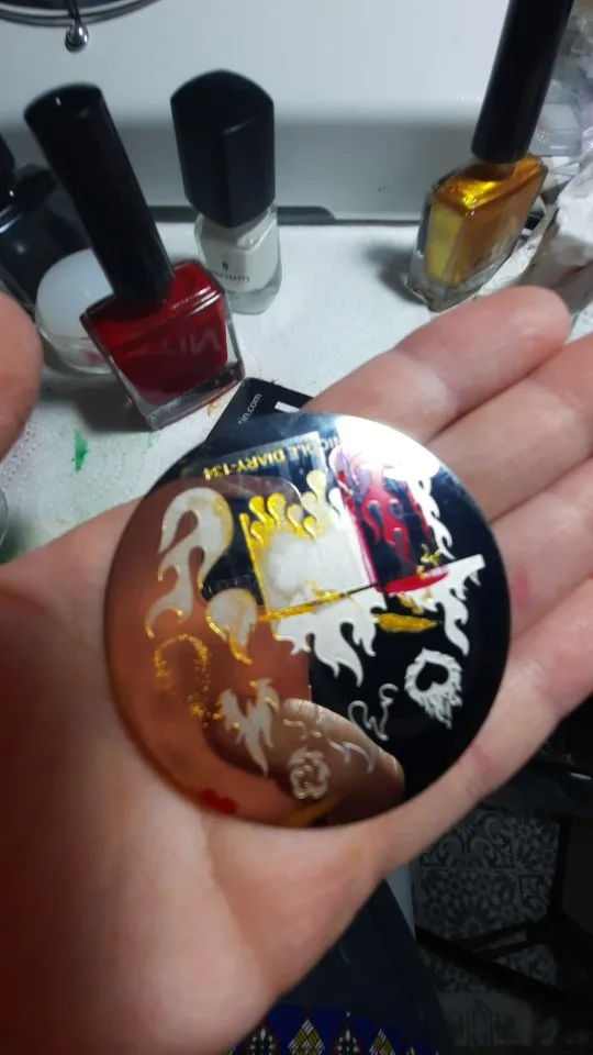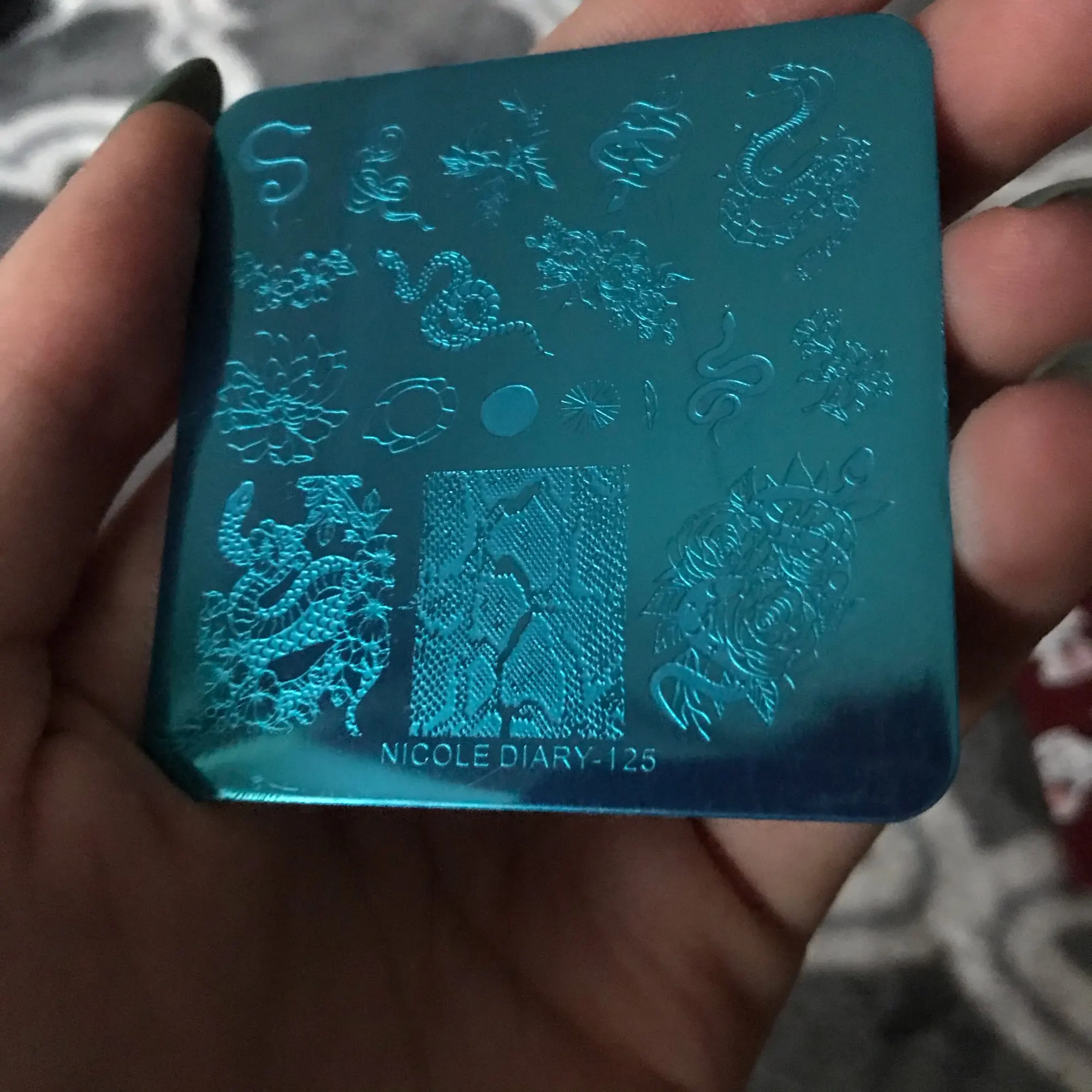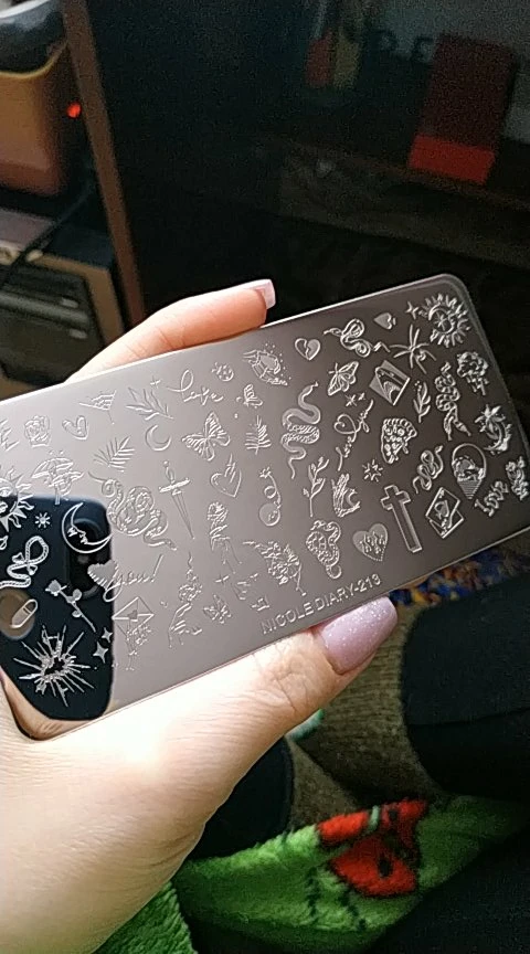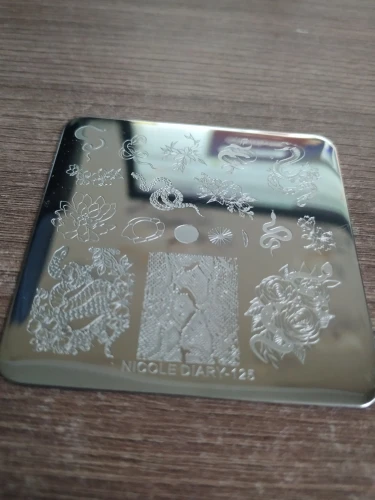 После получения сразу проверила пластину , гравировка тонюсенькая , подушечками пальцев не чувствуется , ни каким лаком для стемпига не переносилась полностью , кроме лака Николь Дэйри , то есть родным )) , зато гель лак для стемпинга любого производителя отпечатался , учитывайте эту особенность этой пластины !