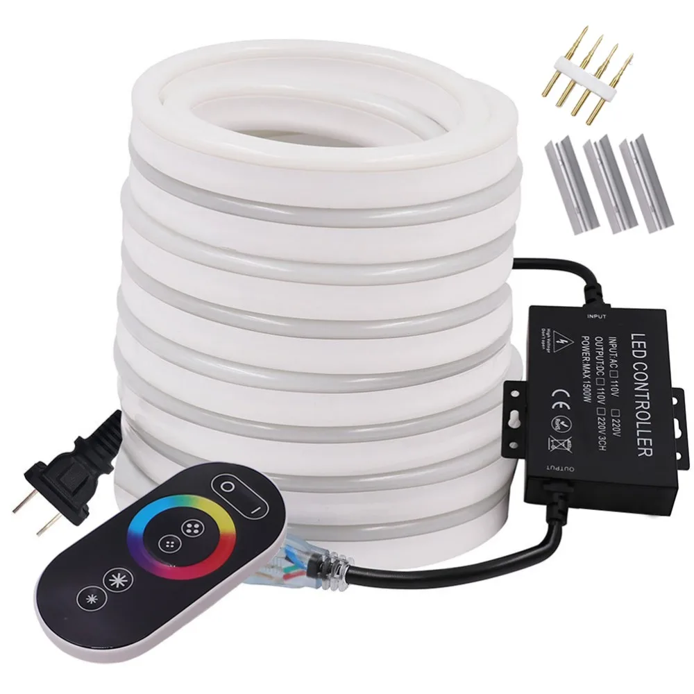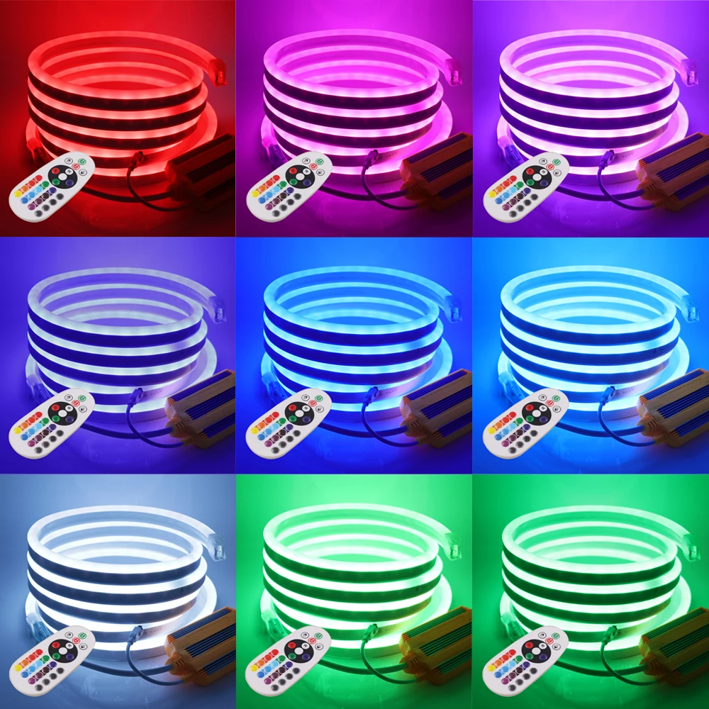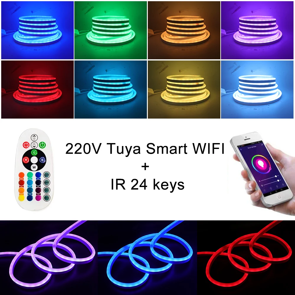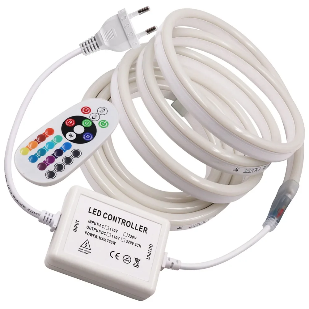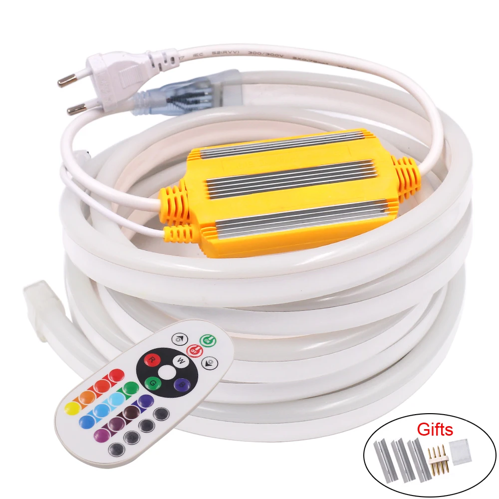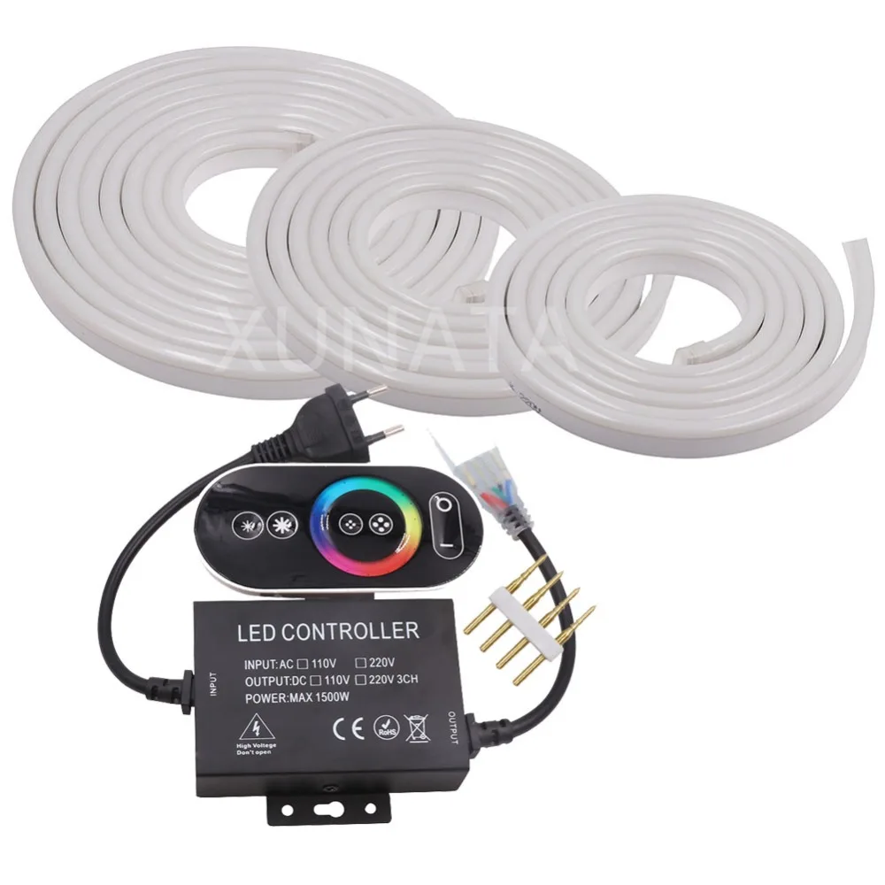 Неоновый свет Светодиодная лента RGB Неоновый знак 220 В 110 В гибкий светодиодный веревочный светильник сенсорный пульт дистанционного управления 5050 2835 Светодиодный струнный светильник ЕС США Великобритания набор