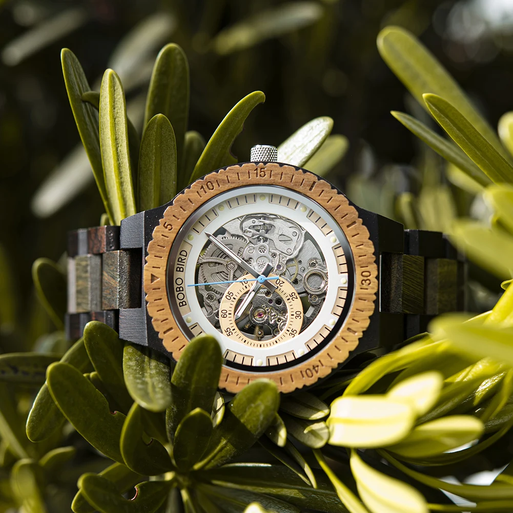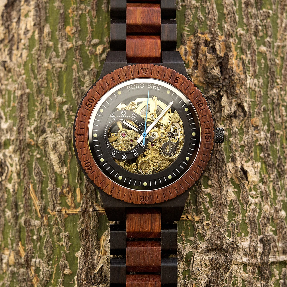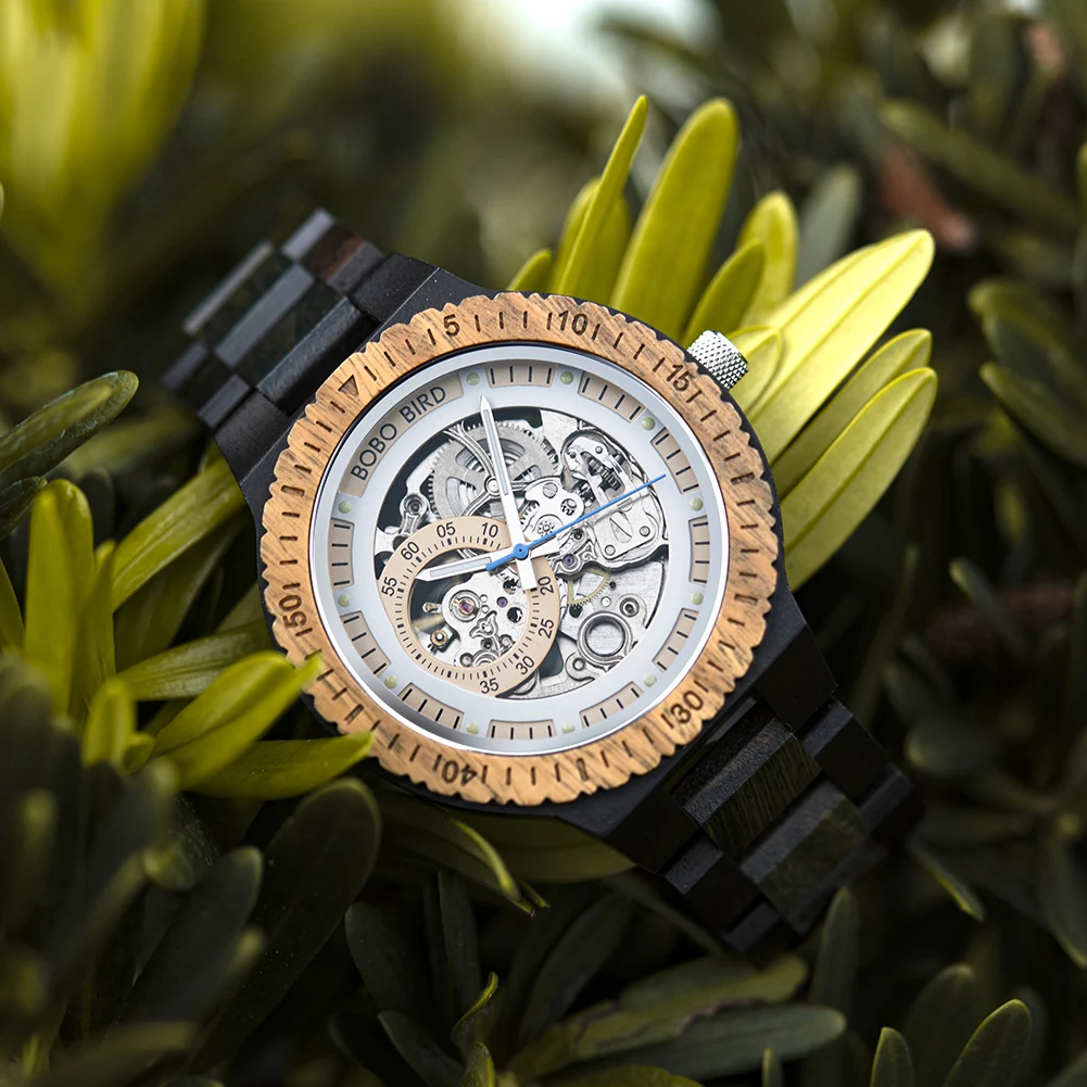 Мужские автоматические механические часы BOBO BIRD, водонепроницаемые мужские деревянные часы с логотипом на заказ, Прямая поставка