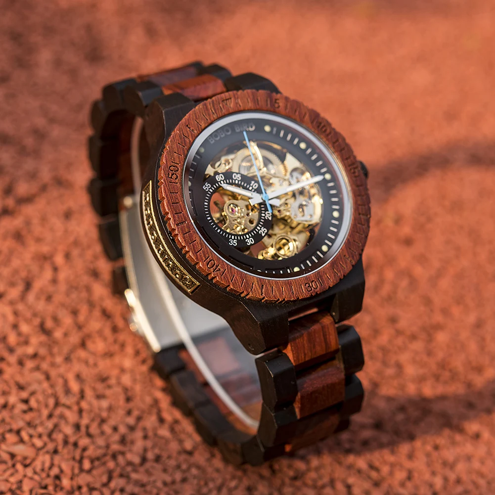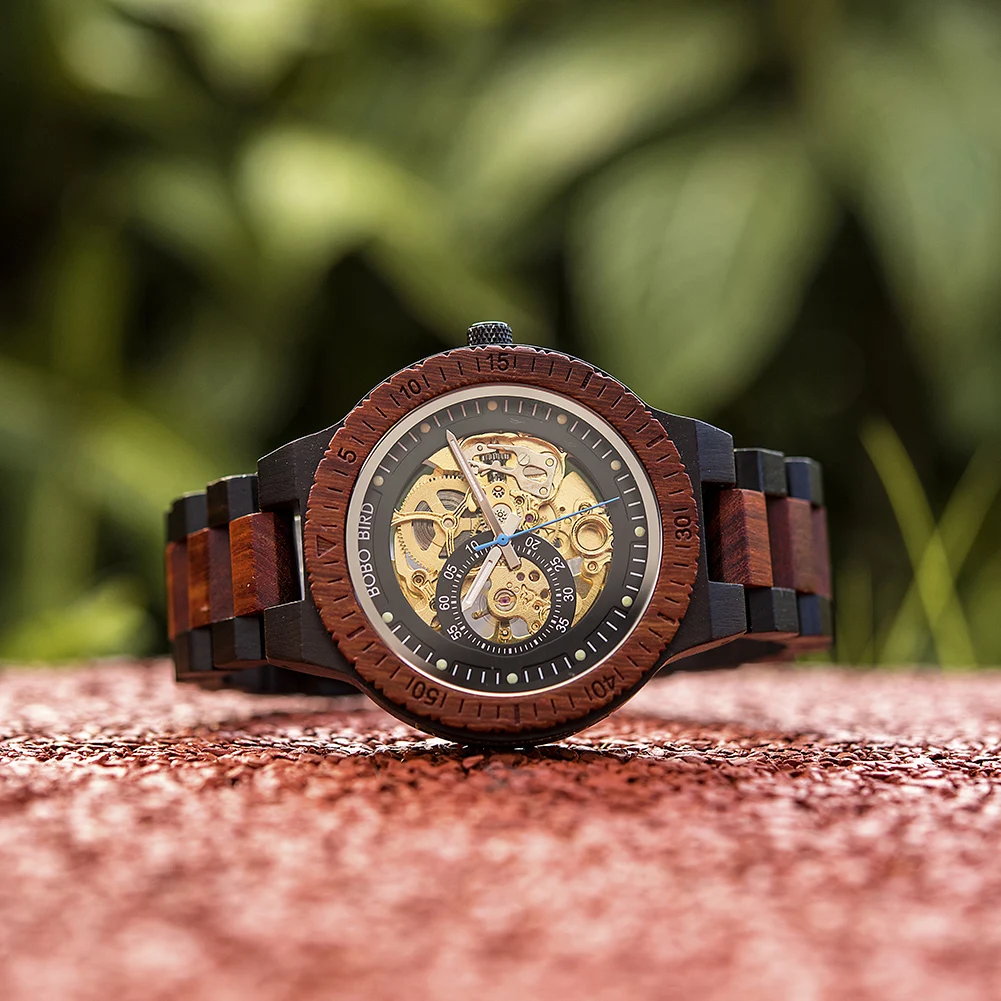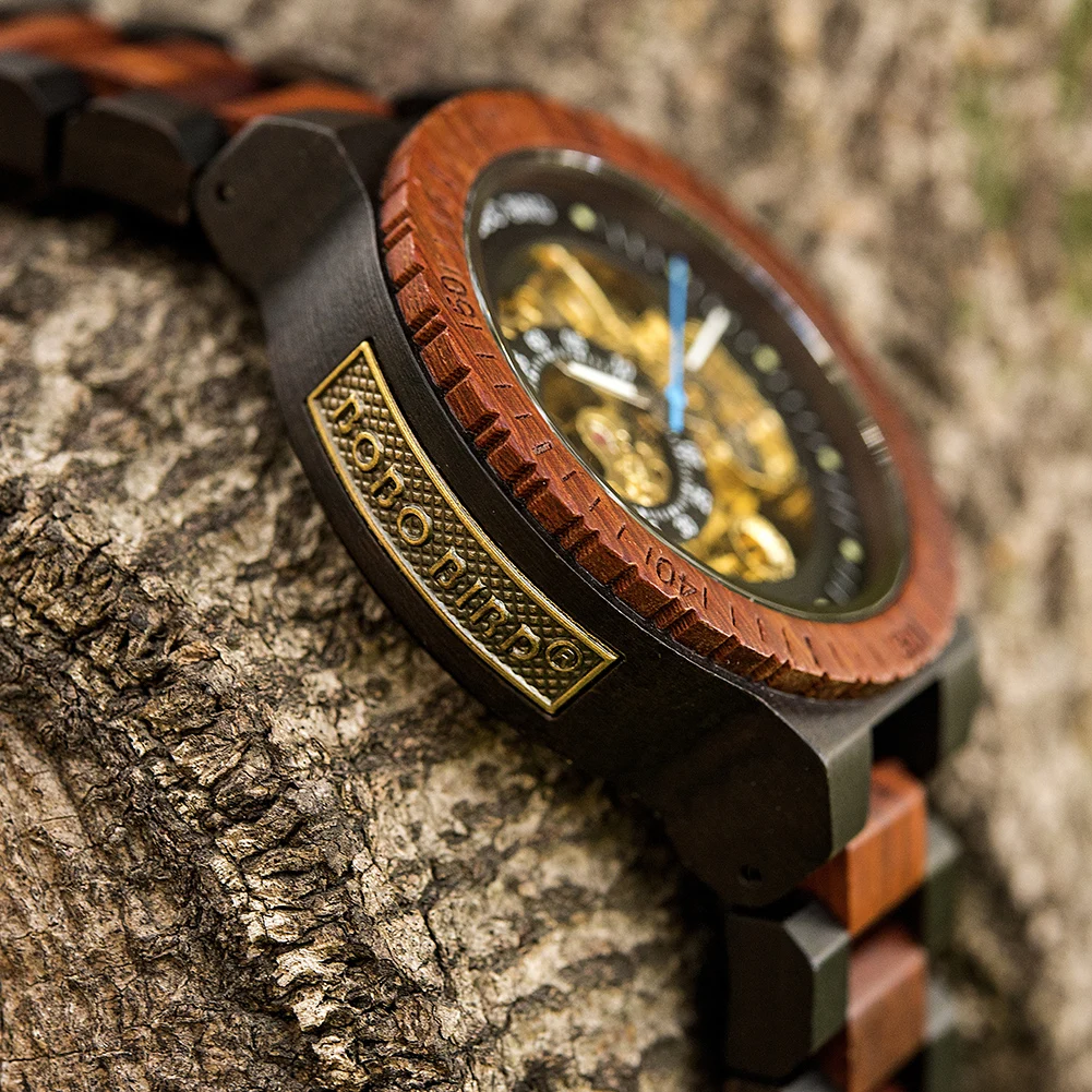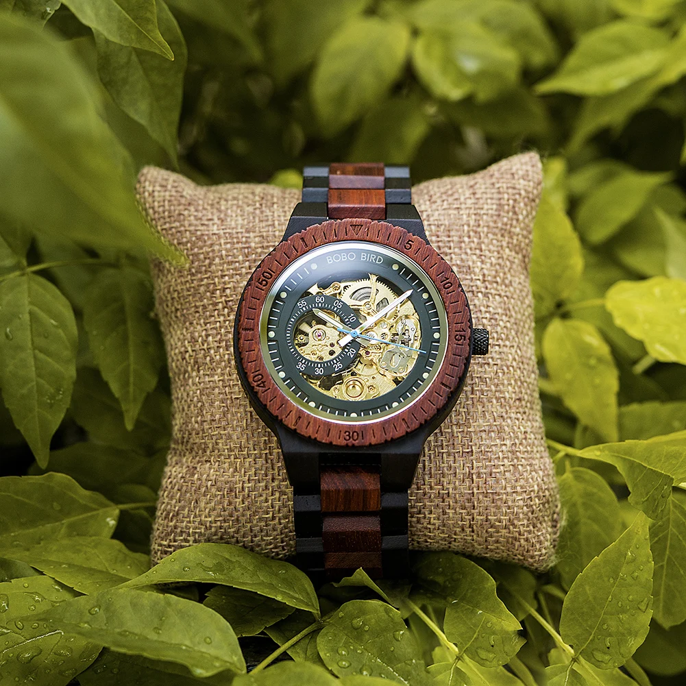 Мужские автоматические механические часы BOBO BIRD, водонепроницаемые мужские деревянные часы с логотипом на заказ, Прямая поставка