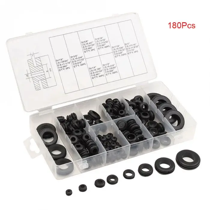 180 шт. резиновая втулка, отверстие для брандмауэра, комплект удерживающих колец, автомобильный комплект прокладок для электрического провода, для цилиндрического клапана, водопроводной трубы