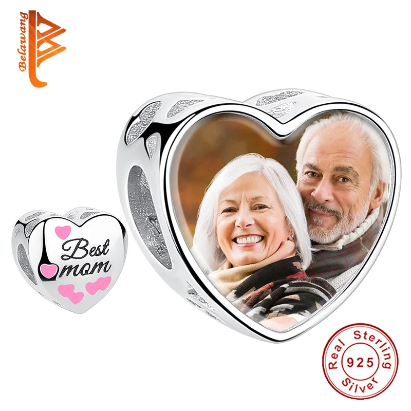 ELESHE 100% 925 серебро сердце лучшего мамы из бисера персонализиро...