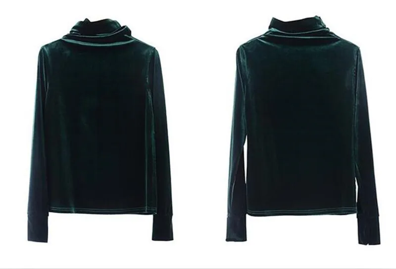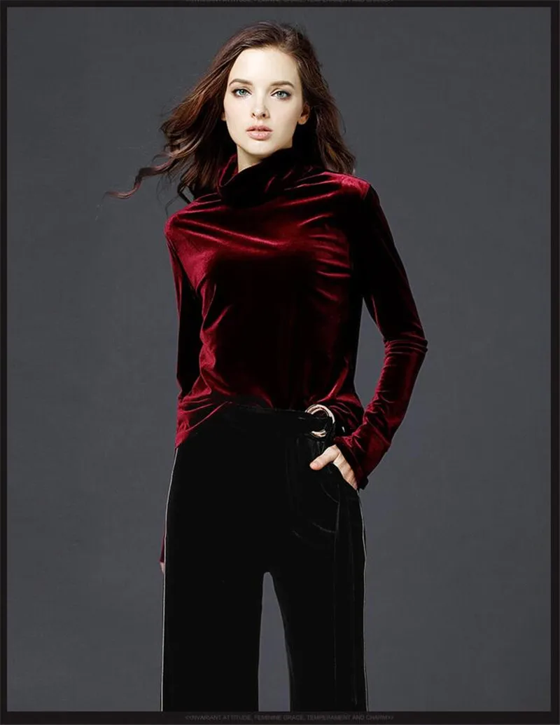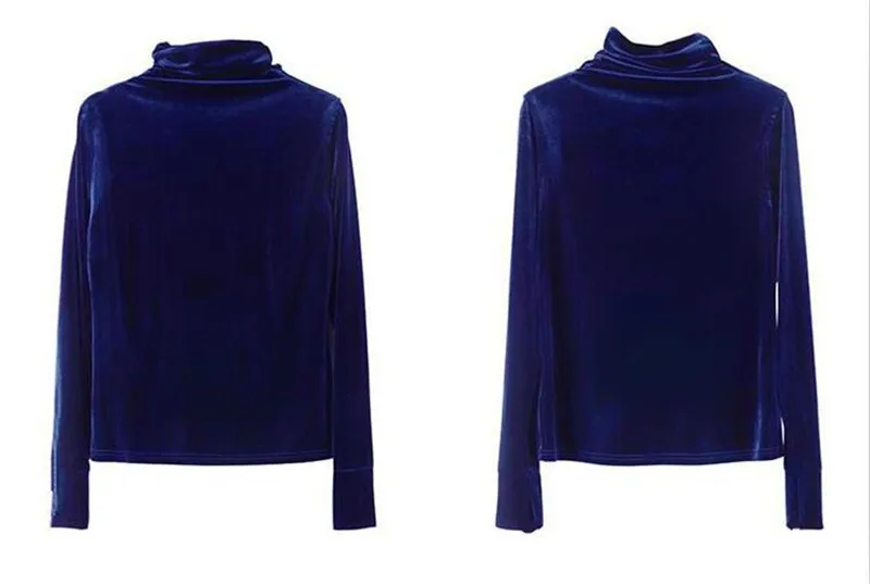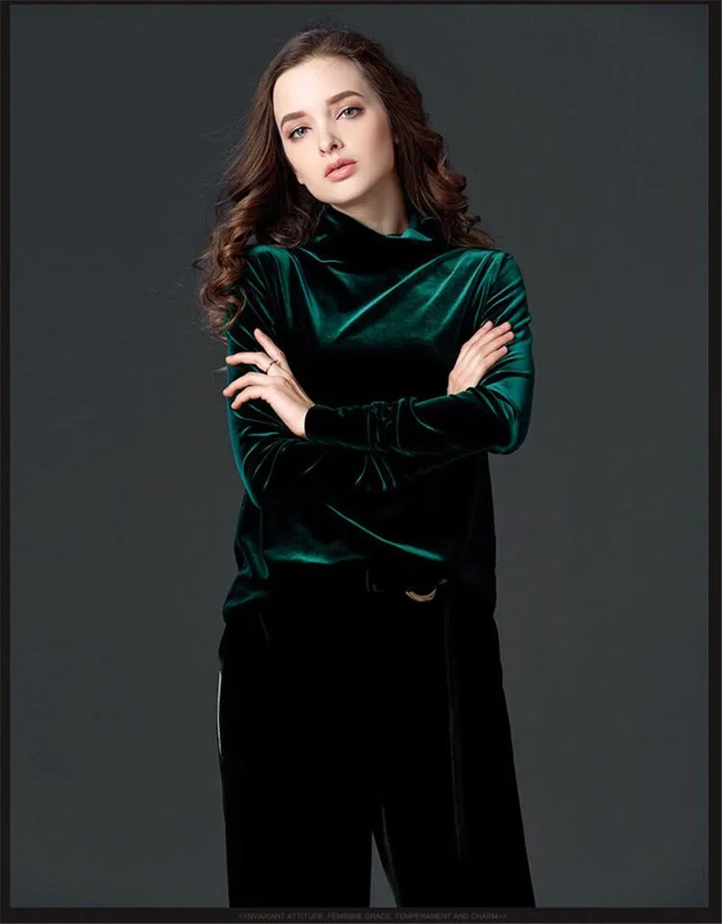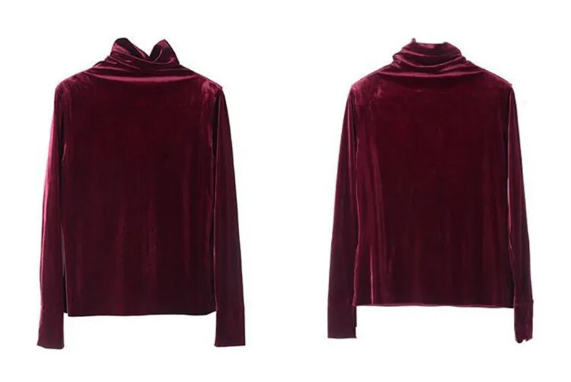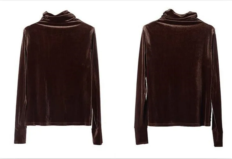 Женские осенние бархатные рубашки с длинным рукавом, однотонные топы с высоким воротником, удобные эластичные базовые футболки-