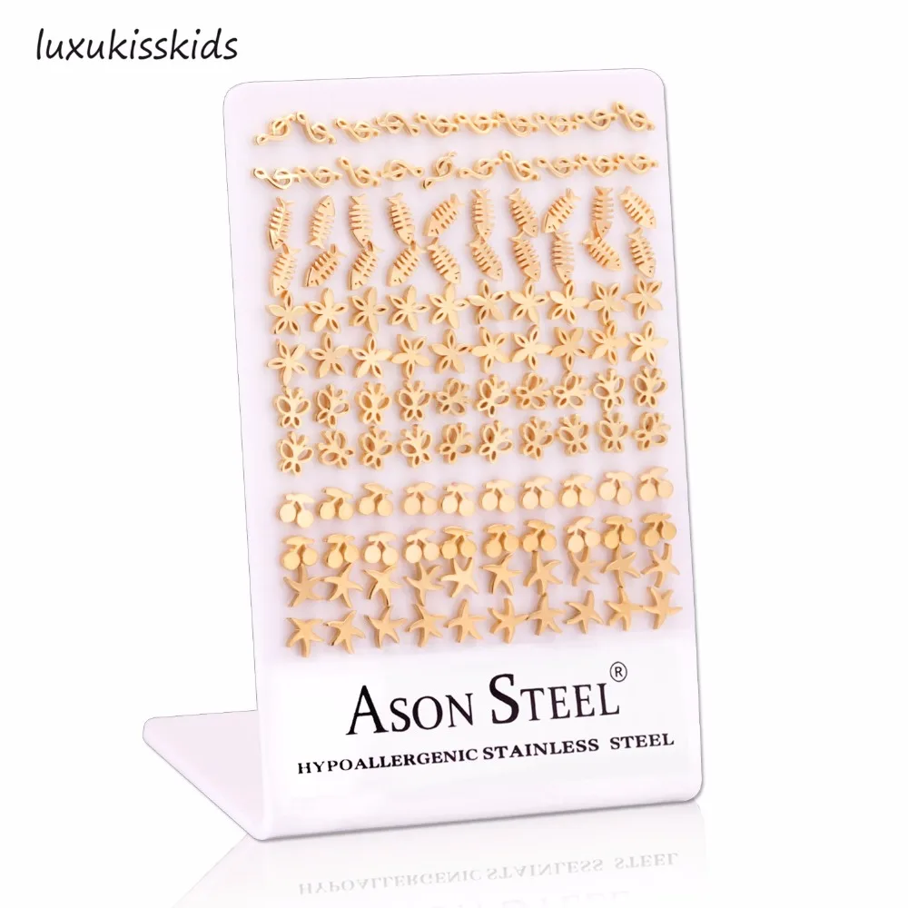Серьги-гвоздики ASONSTEEL для женщиндевушек, 60 парлот различных фо...