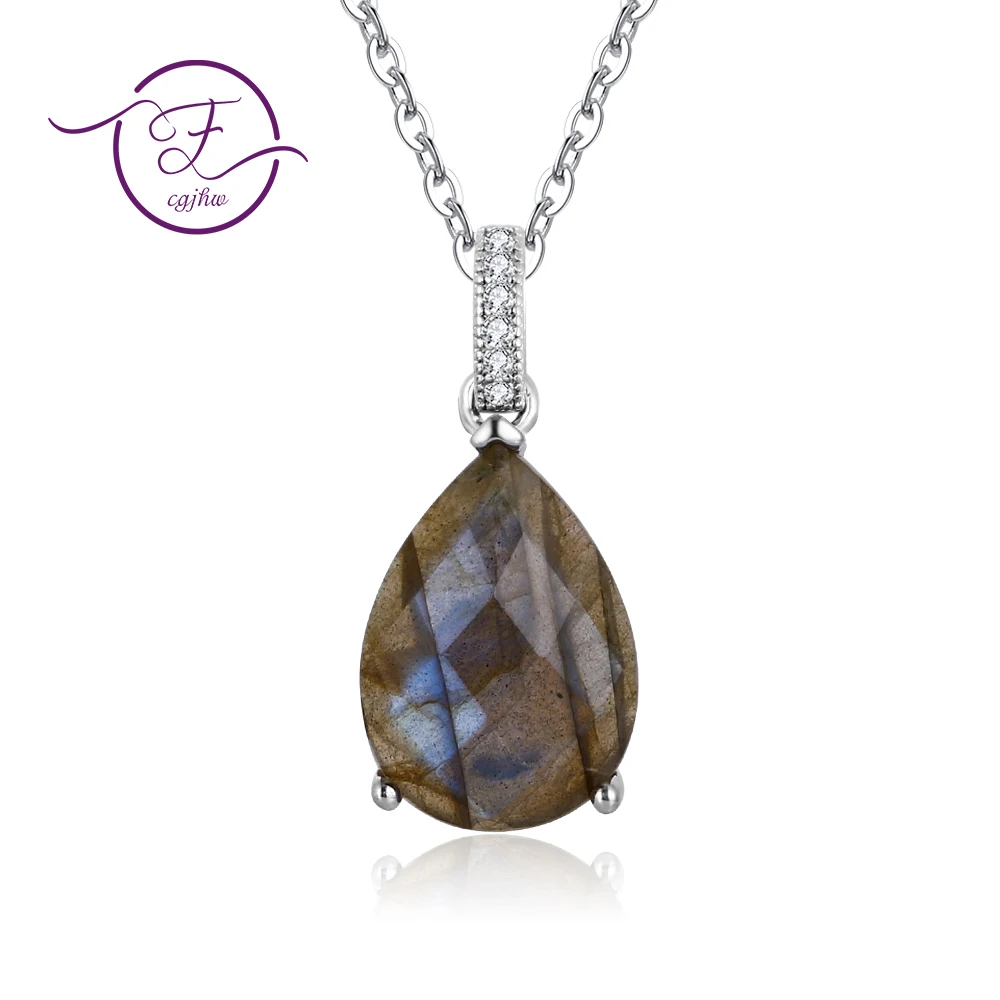 Серебряное ожерелье с подвеской в форме крупной груши 13*18 мм Лабр...