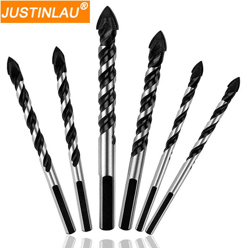 JUSTINLAU 6-12 мм треугольное сверло из вольфрамовой стали и металлического сплава для керамических стен, стеклянных отверстий для бетона, черная металлическая дрель