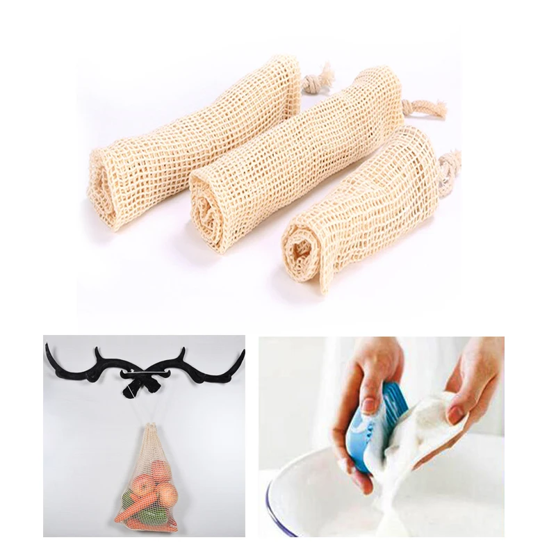 Мешочки хлопковые многоразовые для хранения овощей и фруктов, 3 размера, 6 шт.