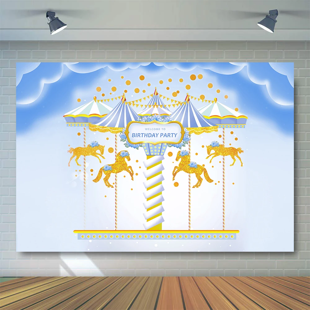 Фон для фотографий Детский праздник синий мультфильм цирк карусель День Рождения вечерние фон реквизит для фотостудии W-3381