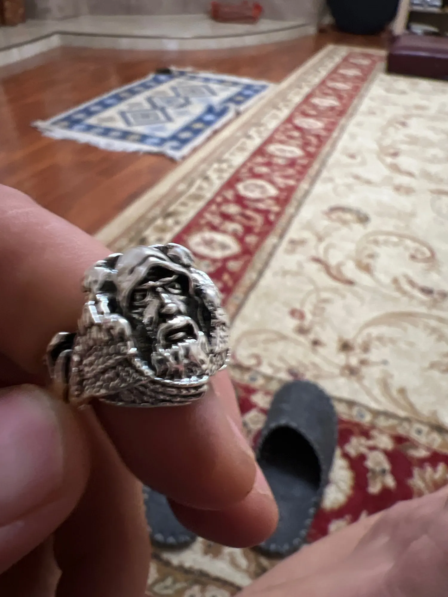Кольцо совсем не соответствует тому, что на фото, мы не видим лица, а цвет слишком яркий и не серый, как следует. Я не рекомендую этот продукт!