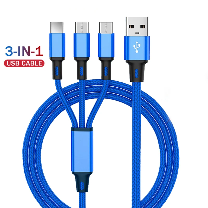 Кабель 3 в 1 Micro USB Type-C мобильный телефон для iPhone 11, XS, X, 8, 7, 6, Android, Samsung, Xiaomi