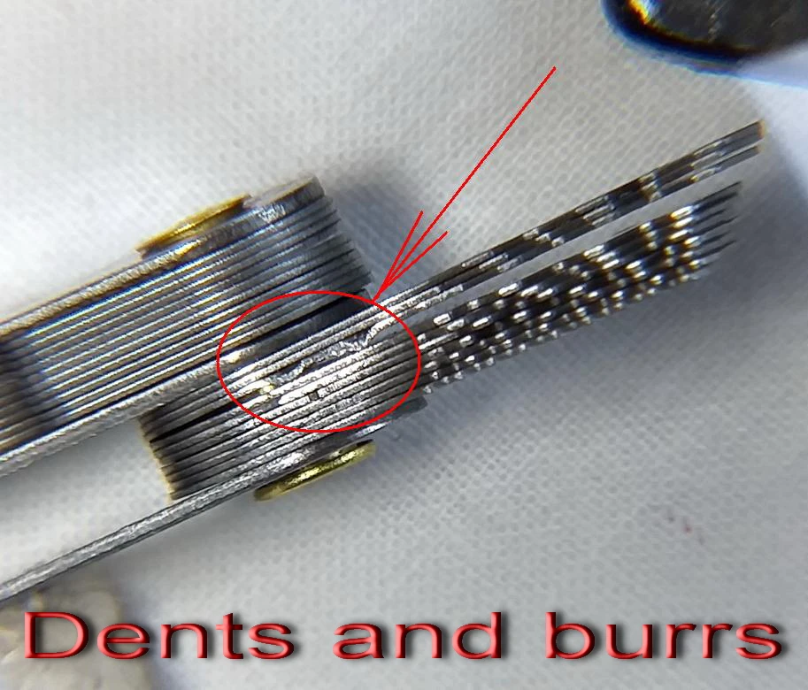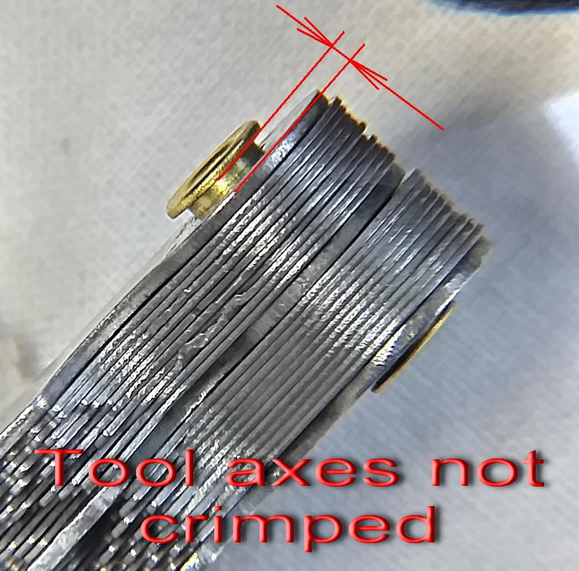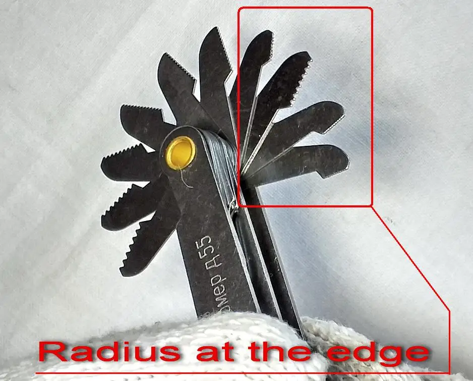 Инструмент имеет следующие дефекты: 1. Метрический диапазон измерения не соответствует заявленному ряду 60º. Отсутствует шаблон 0,5 мм. Вместо её установлен шаблон 1,25 мм. Т.е. в наборе есть два шаблона с шагом 1,25 мм. 2. Все шаблоны изготовлены методом штамповки без последующей механической обработки. Кромки шаблонов имеют заусенцы с одной стороны и радиус на кромке с другой. Это вызвано штамповкой на прессе с тупыми кромками рабочего пуансона и матрицы. Заусенцы на шаблоне 60º шаг 0,6 мм имеют такие размеры, что выполнить контрольные функции этим шаблоном невозможно. 3. На шаблоне 60º / 5,0 мм заусенцы расположены ближе к поворотной оси инструмента и мешают развернуть этот шаблон для измерений, зацепляется за прилежащий рядом. 4. Шаблон 55º шаг 14 / 1″ имеет вмятину. 5 Трубчатые оси не обжаты и не обеспечивают достаточное трение между защитными планками корпуса и наборами шаблонов. Поэтому оценка снижена.