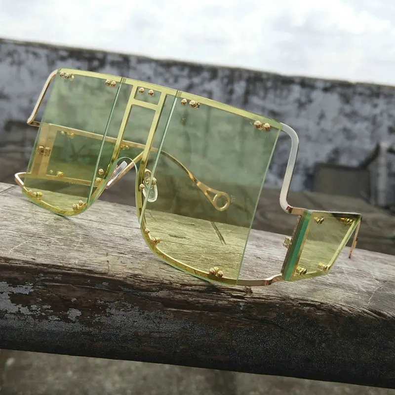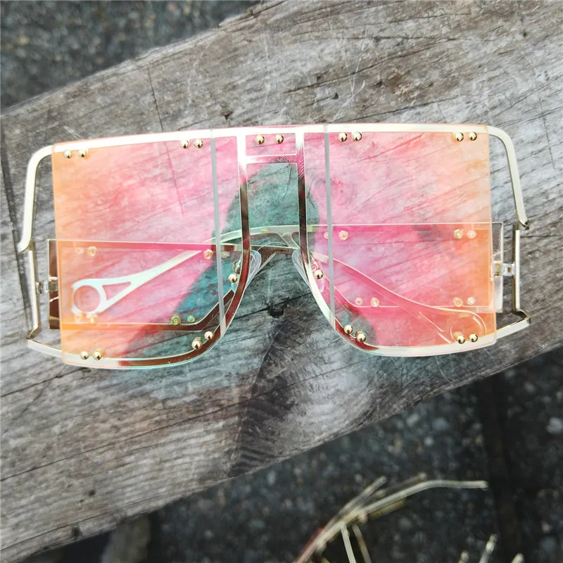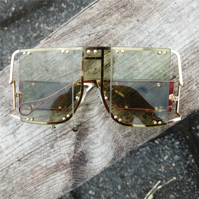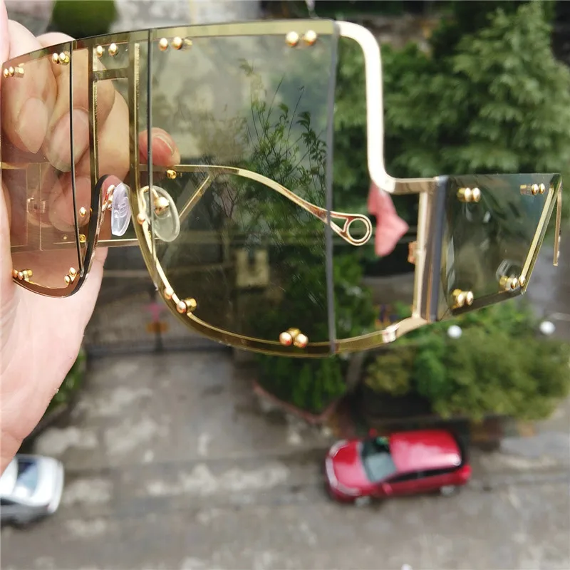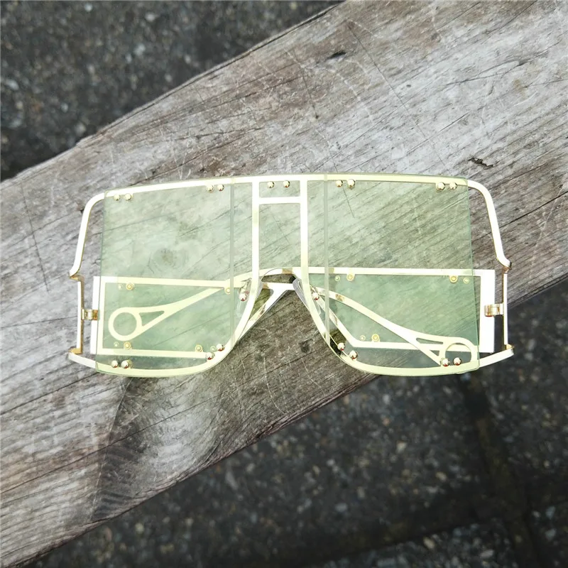 Черные негабаритные Квадратные Солнцезащитные очки мужские новые 2019 цельная линза большая оправа солнцезащитные очки для женщин UV400 золотые линзы зеркало FML