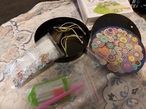 Все замечательно.фонарик светит, алмазы еще не клеела ,но все вроде впорядке. Доставка очень быстрая . СПАСИБО ПРОДАВЦУ.