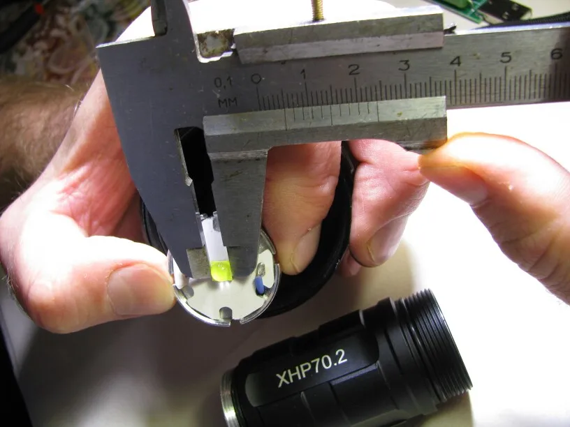 Пять звезд исключительно за возврат большей части суммы по спору. Фонарик то в принципе не плохой полностью в металле, тяжёлый, и в отличии от более тонких собратьев уверенно стоит на голове, даже и провода не плохие. Но светодиод XHP 70.2 имеет размер 7×7 мм. а установленное на этом чуде светодиод 5×5 мутный неравномерный и линза из какого-то мягкого силикона. Светит не много лучше фонарика из соседнего магазина на Т6 светодиоде. Отправили очень быстро. Посылка доехала до Украины за три недели укрпошта.