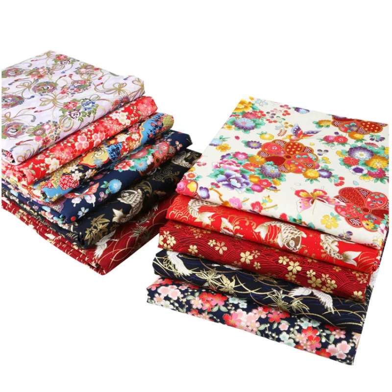 Кимоно в японском стиле, 100% хлопковая ткань, позолоченный принт, ткань Ципао для платья лоскутное домашнее текстильное изделие, материал 150*50 см