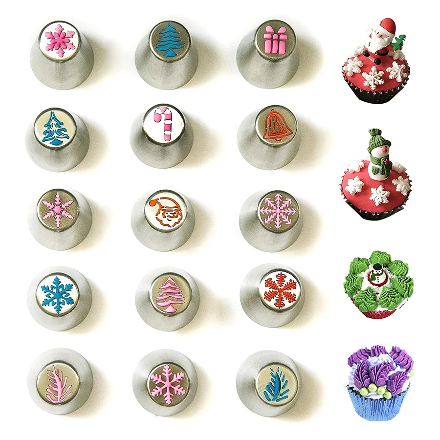 15 шт. рождественские насадки, русские Кондитерские насадки для глазировки, Рождественский дизайн для тортов, кексов, печенья, украшения, кондитерские инструменты для выпечки