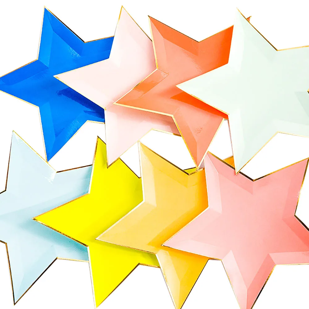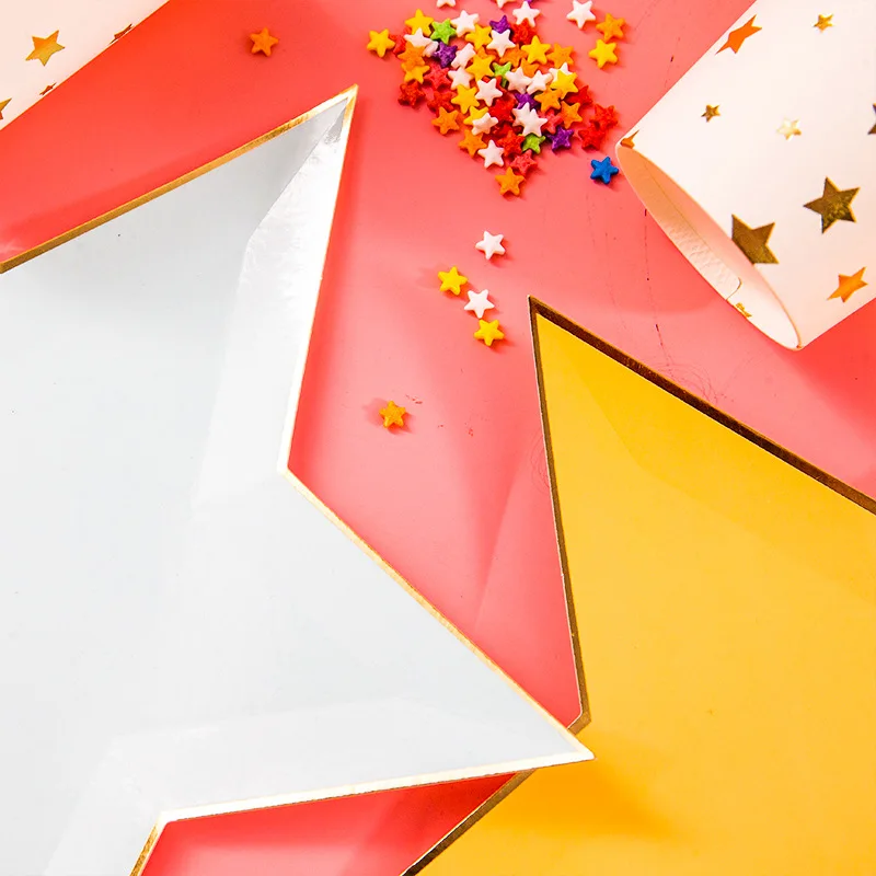 Одноразовая посуда для украшения свадьбы, 8 шт.1 упаковка, однотонный лоток для бумаги с пятиконечной звездой, детские украшения для дня рождения