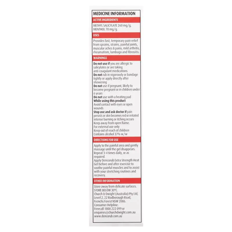 Для тех, кто хочет втереть немного дополнительного тепла в мышцы, попробуйте Dencorub * сверхпрочный тепловой гель.Dencorub гель повышенной прочности, который делает его концентрированной горячей формулой, которая дает несколько часов облегчения от боли, вызванной растяжениями, растяжениями, болезненными суставами, мышечными болями и болями, а также артритом, ревматизм, ламбаго и фиброзит. Прозрачная гелевая формула обеспечивает более быстрое проникновение и облегчение.