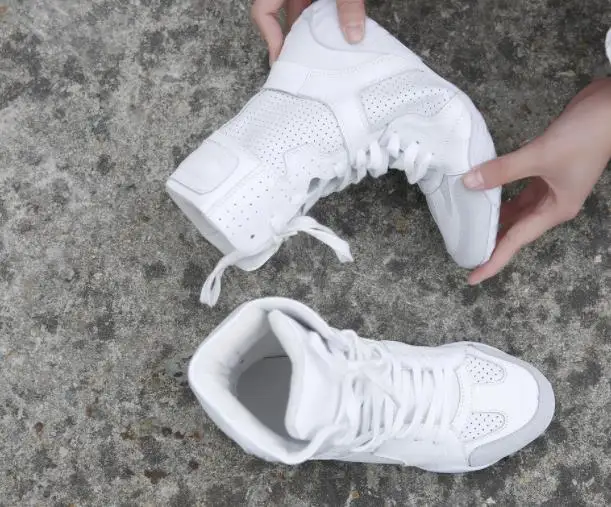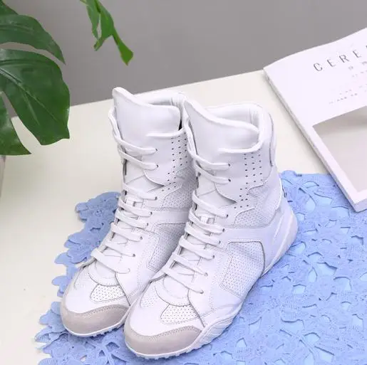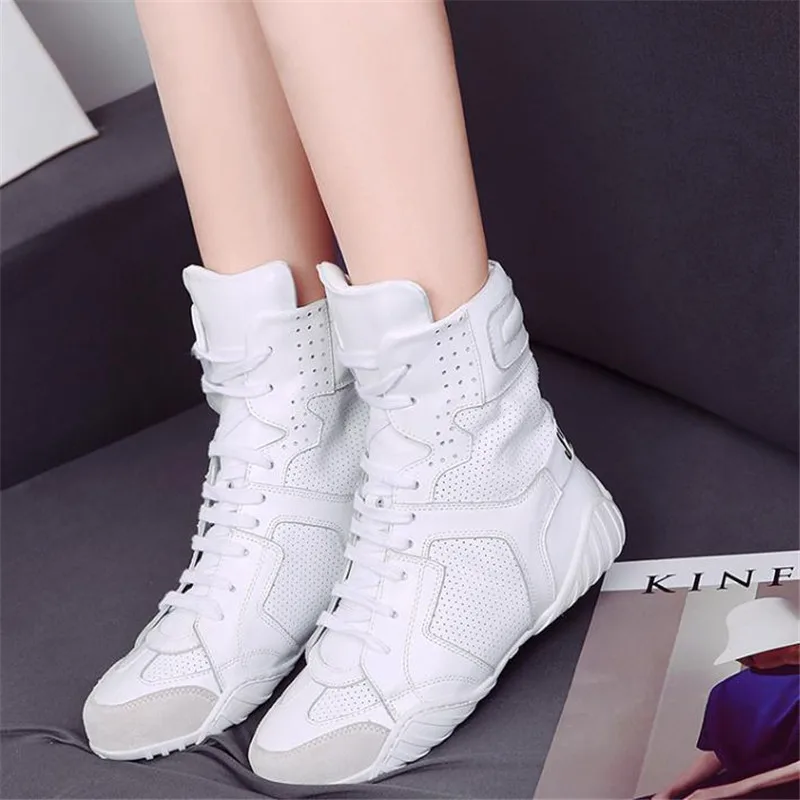 Женские высокие кроссовки, белые, весенне-летние, повседневные, дышащие, однотонные, на плоской подошве