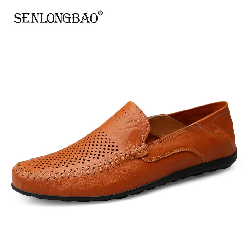 Мужские повседневные туфли из натуральной кожи, брендовые дышащие лоферы, Нескользящие Мокасины, размеры 38-47, весна-лето