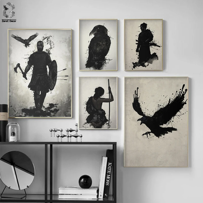 Японский плакат, армированный Ворон самурая, Настенная картина на холсте, ВИНТАЖНАЯ фотография для гостиной, декор игровой комнаты
