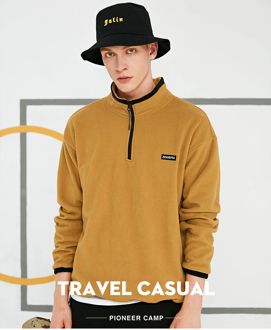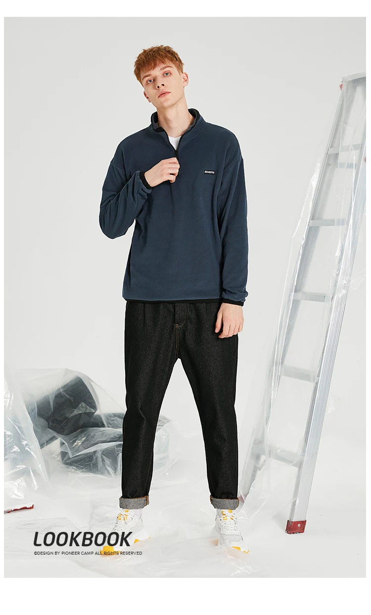 Свитшот Pioneer Camp флисовый мужской, теплая толстовка на молнии, из 100% полиэфирного волокна, черный, желтый, темно-синий цвета, AJK908194, зима
