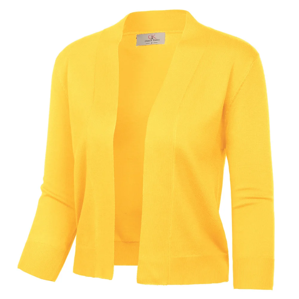 Жакет женский, болеро с рукавом 34, однотонное, приталенное, осенне-весеннее, элегантное, укороченное, вязаное пальто, топы