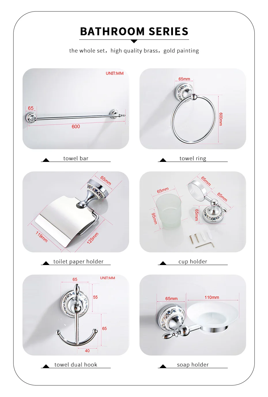 Аксессуары для ванной комнаты, керамические наборы s, латунный хромированный держатель для туалетной щетки, вешалка для полотенец, набор аксессуаров для ванной комнаты, керамические Товары для ванной комнаты