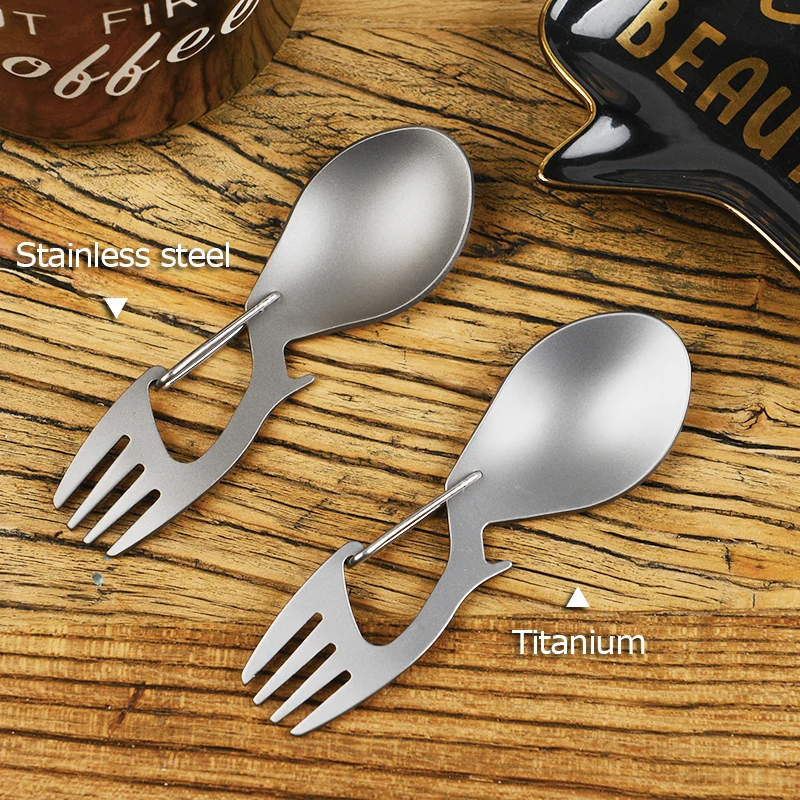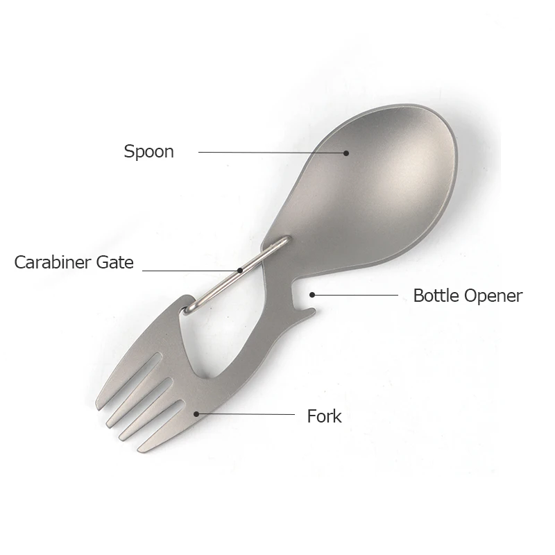 Многофункциональная ложка и вилка с карабином из нержавеющей стали и титанового сплава, открывашка для бутылок для кемпинга, пешего туризма, пикника