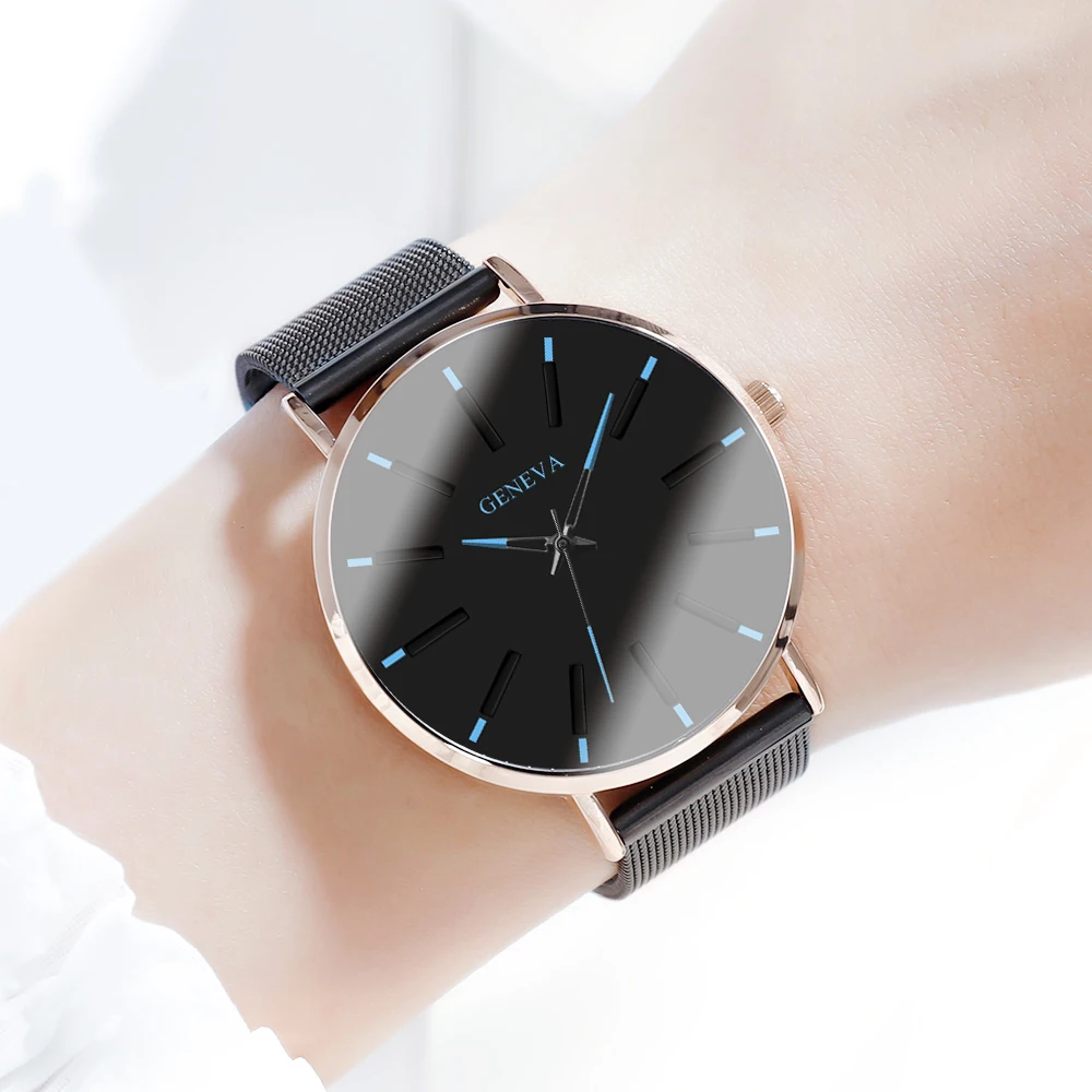 Женева простые женские часы, романтичные розовые золотые светящиеся кварцевые наручные часы, роскошные женские часы из нержавеющей стали, женские часы