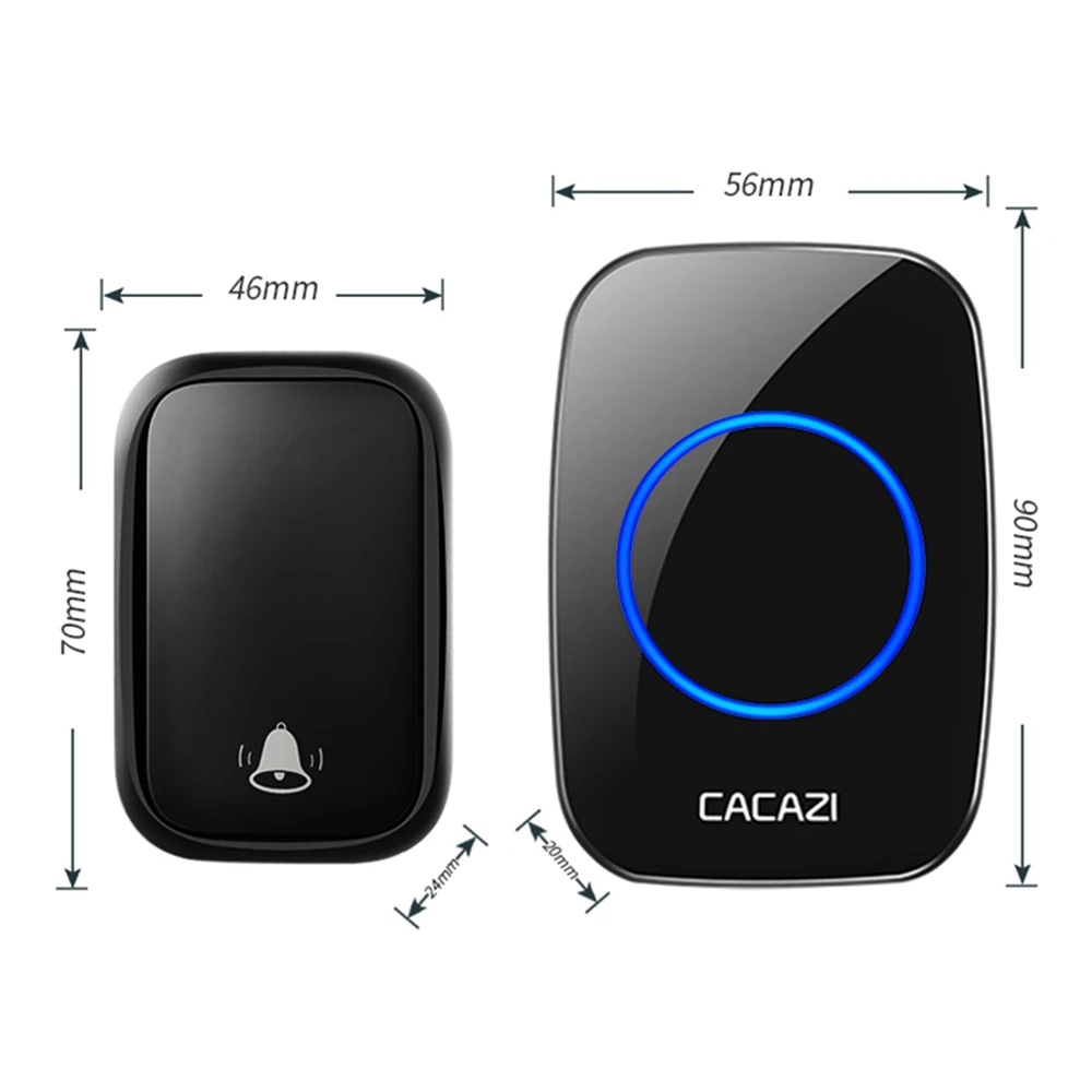Беспроводной дверной звонок CACAZI, Водонепроницаемый дверной звонок с автономным питанием, без батареек, вилка стандарта США, ЕС, Великобритании, звонок для дома, 1, 2 кнопки, 1, 2, 3 приемника