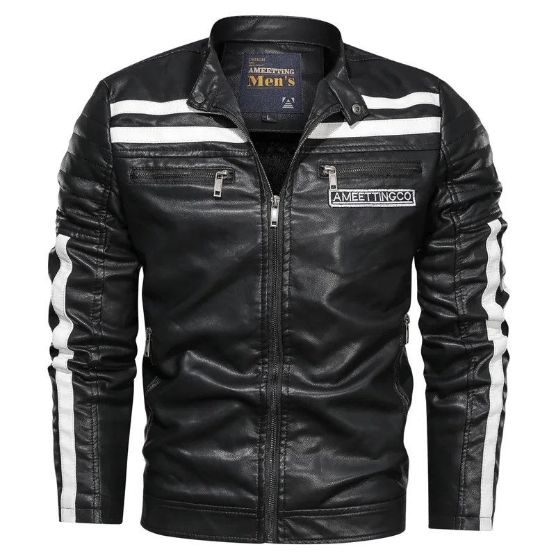 Куртка мужская кожаная на молнии, с воротником-стойкой, размеры до 6XL