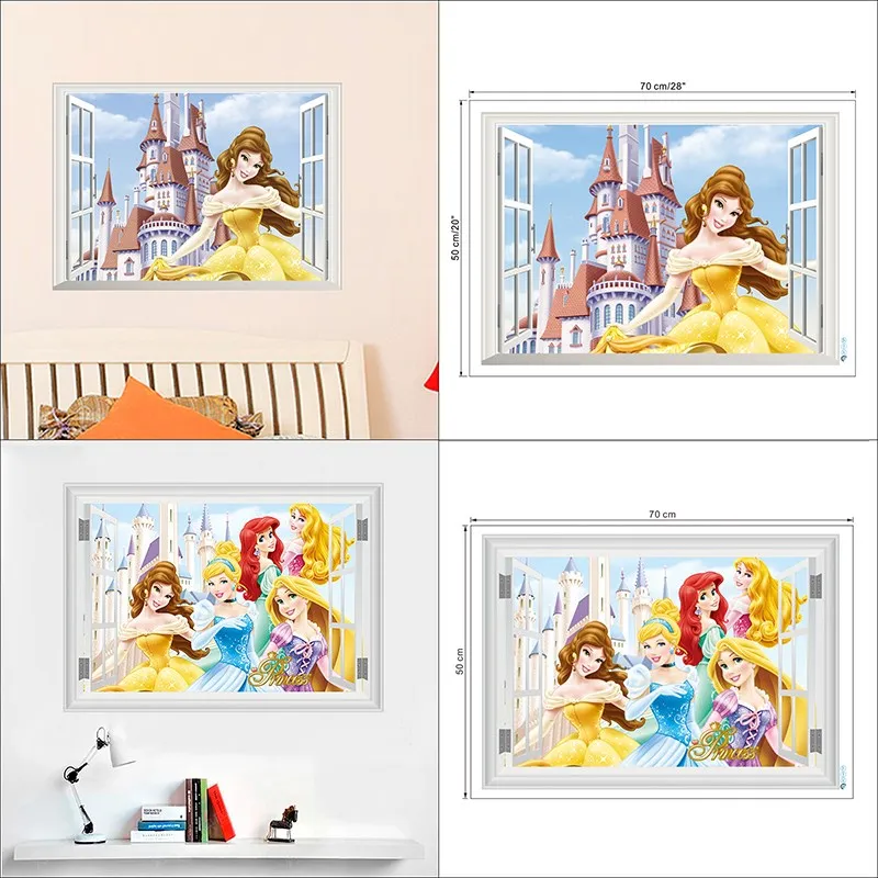 3d Замороженные Белоснежки принцесса окно наклейки на стену спальня домашний декор мультфильм Золушка Белль Аврора наклейки на стену роспись искусство