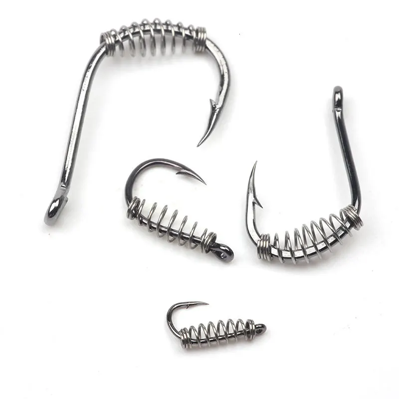 Rompin 10 шт.лот рыболовный пружинный крючок с зазубриной поворотный круглый крючок для карпа размер 2-15 # джиг рыболовный крючок для ловли нахлыстом рыболовные аксессуары снасти